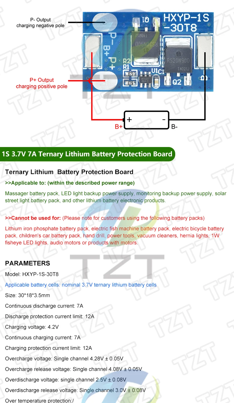 Lifepo4 Battery BMS 1S 3.2V 3.7V 7A Charging Board Short Circuit Protection PCM Self Recovery With Temperature Protection