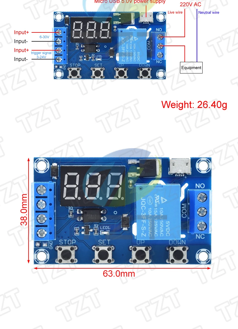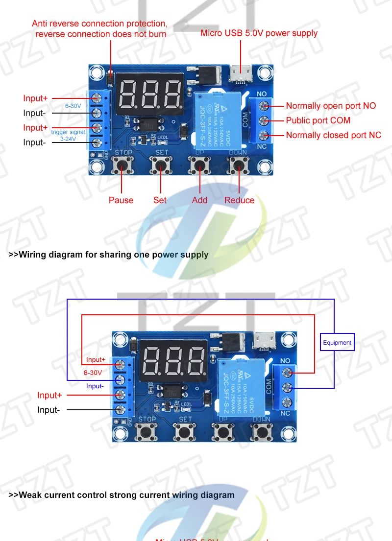 TZT DC 6-30V Automation Cycle Delay Timer Module Control Off Switch Support Micro USB 5V LED Display Delay Time Relay 6V 9V 12V 24V