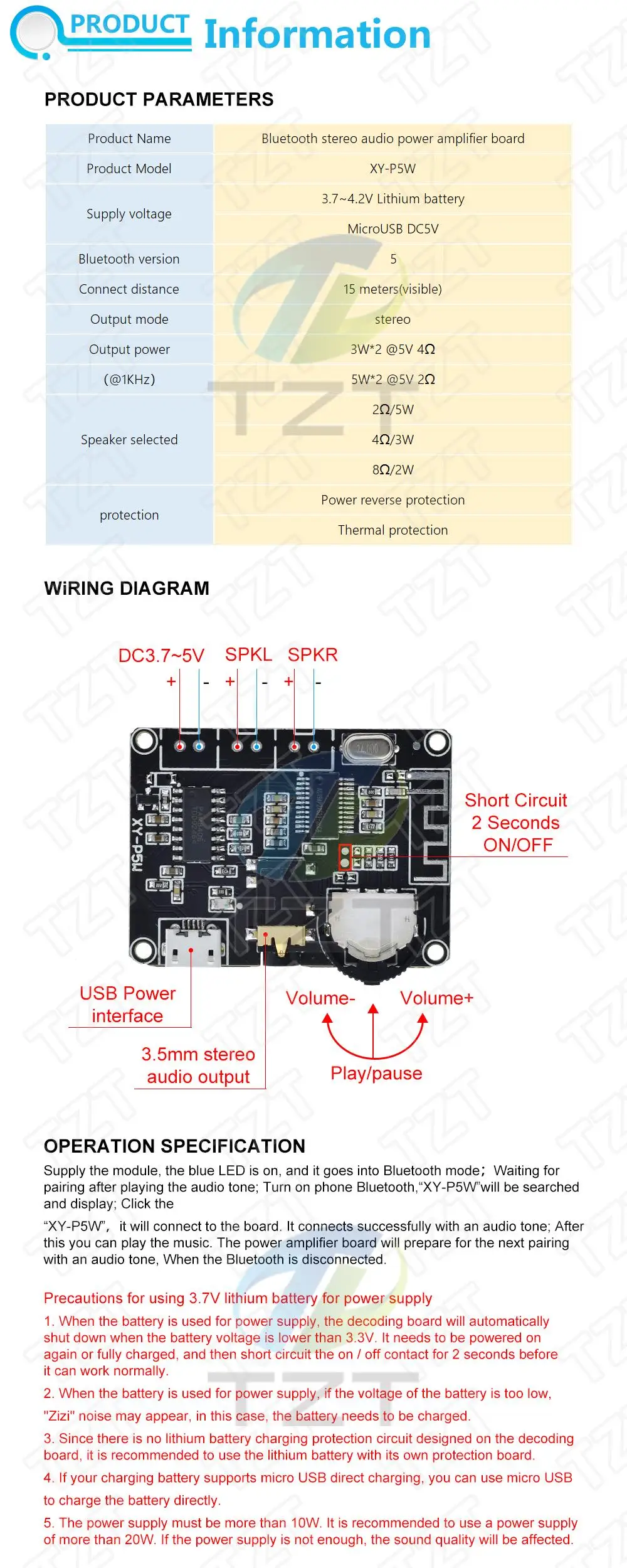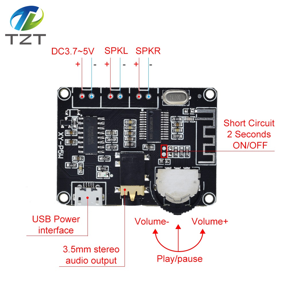 TZT 5W+5W PAM8406 Bluetooth 5.0 DC3.7-5V stereo audio power amplifier module XY-P5W for Arduino diy kit