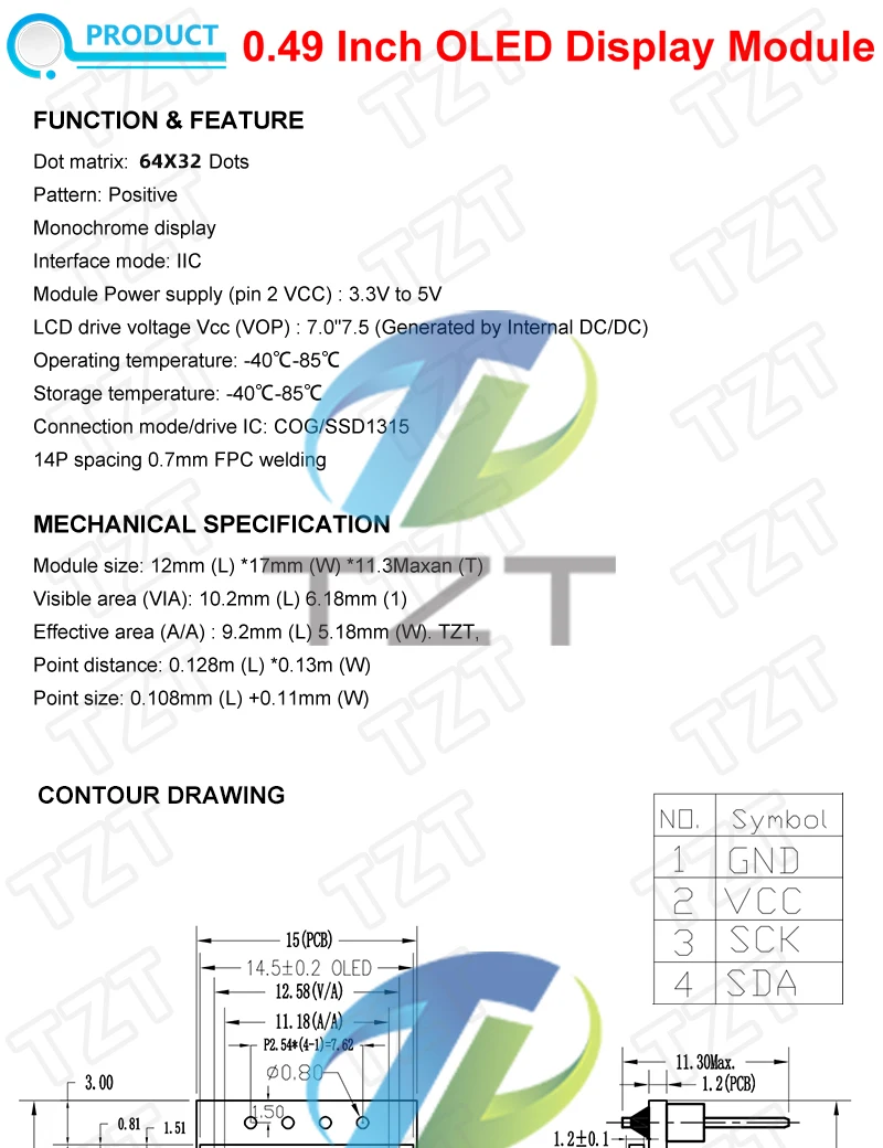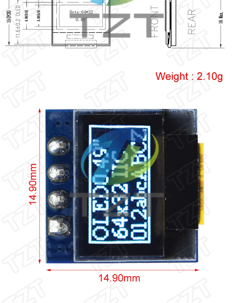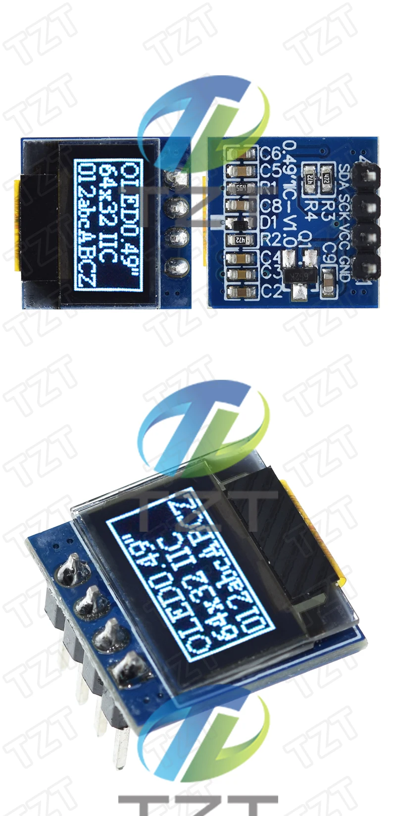 TZT 0.49 Inch OLED Display LCD Module White 0.49" Screen 64x32 I2C IIC Interface SSD1306 Driver for Arduino AVR STM32
