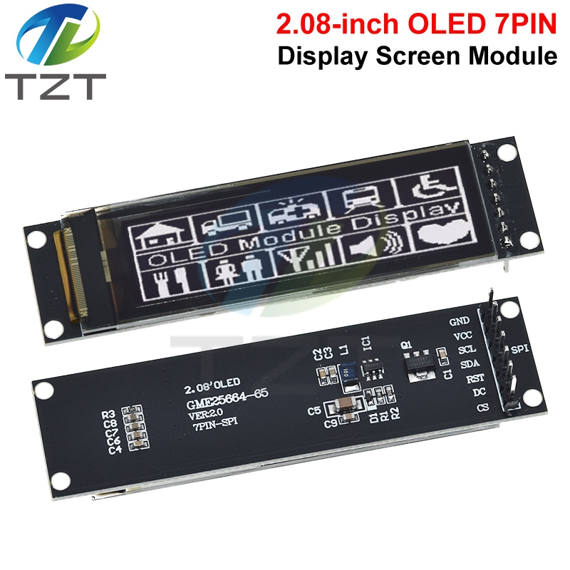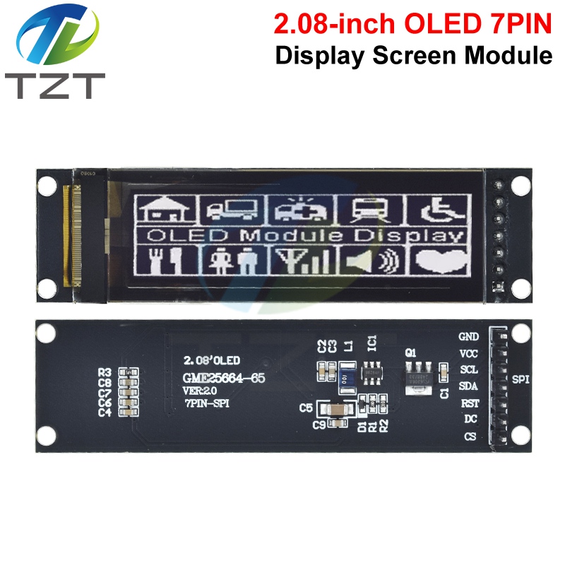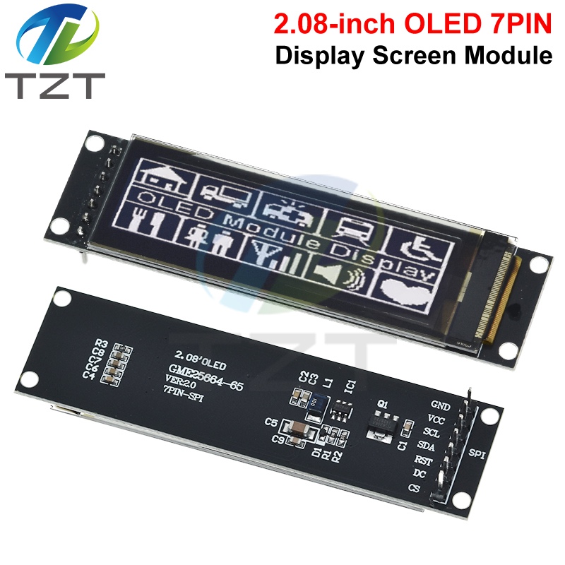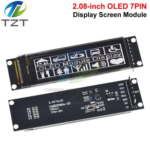 TZT Real OLED Display 2.08" 256*64 25664 Graphic LCD Module White Display Screen LCM Screen SH1122 Controller Support SPI
