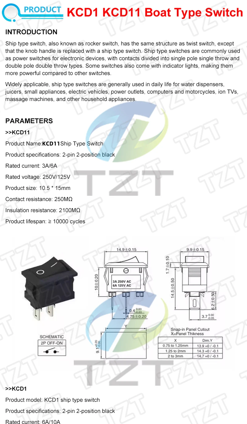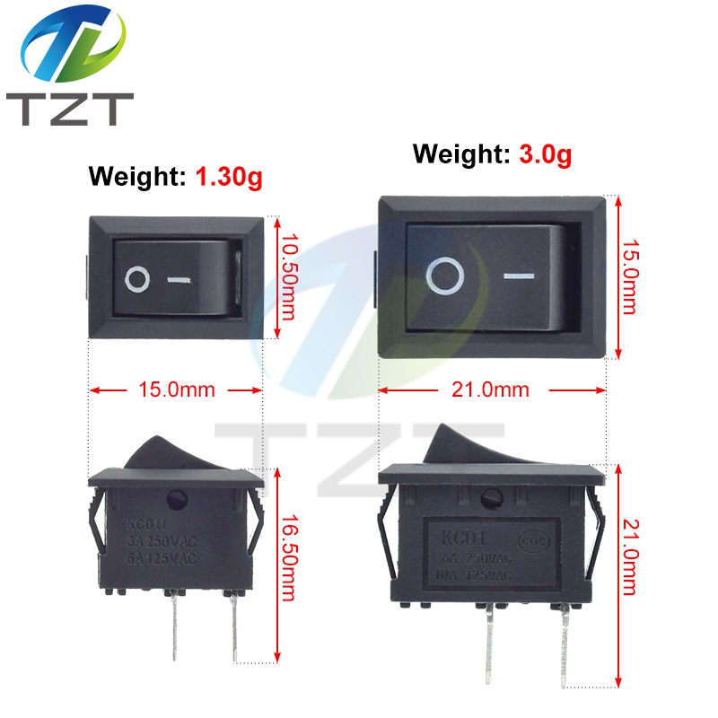 KCD11-101 3A/6A 250V 6A/10A 125V 10*15mm 21*15mm SPST 2PIN ON/OFF G130 Boat Rocker Switch Car Dash Dashboard Truck KCD1 switch