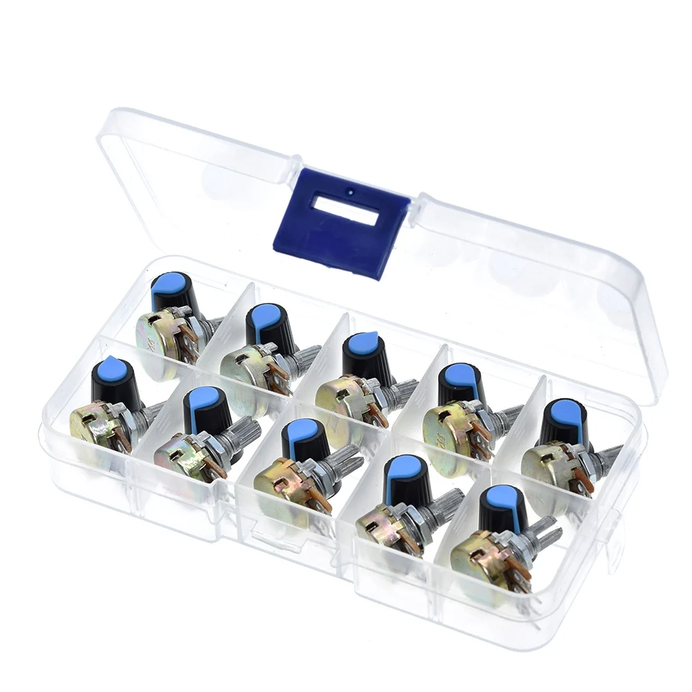 TZT WH148 Potentiometer Kit B1K 2K 5K 10K 20K 50K 100K 500K 1M 15mm Linear Taper Rotary Potentiometer Resistor Set 3pin With Cap