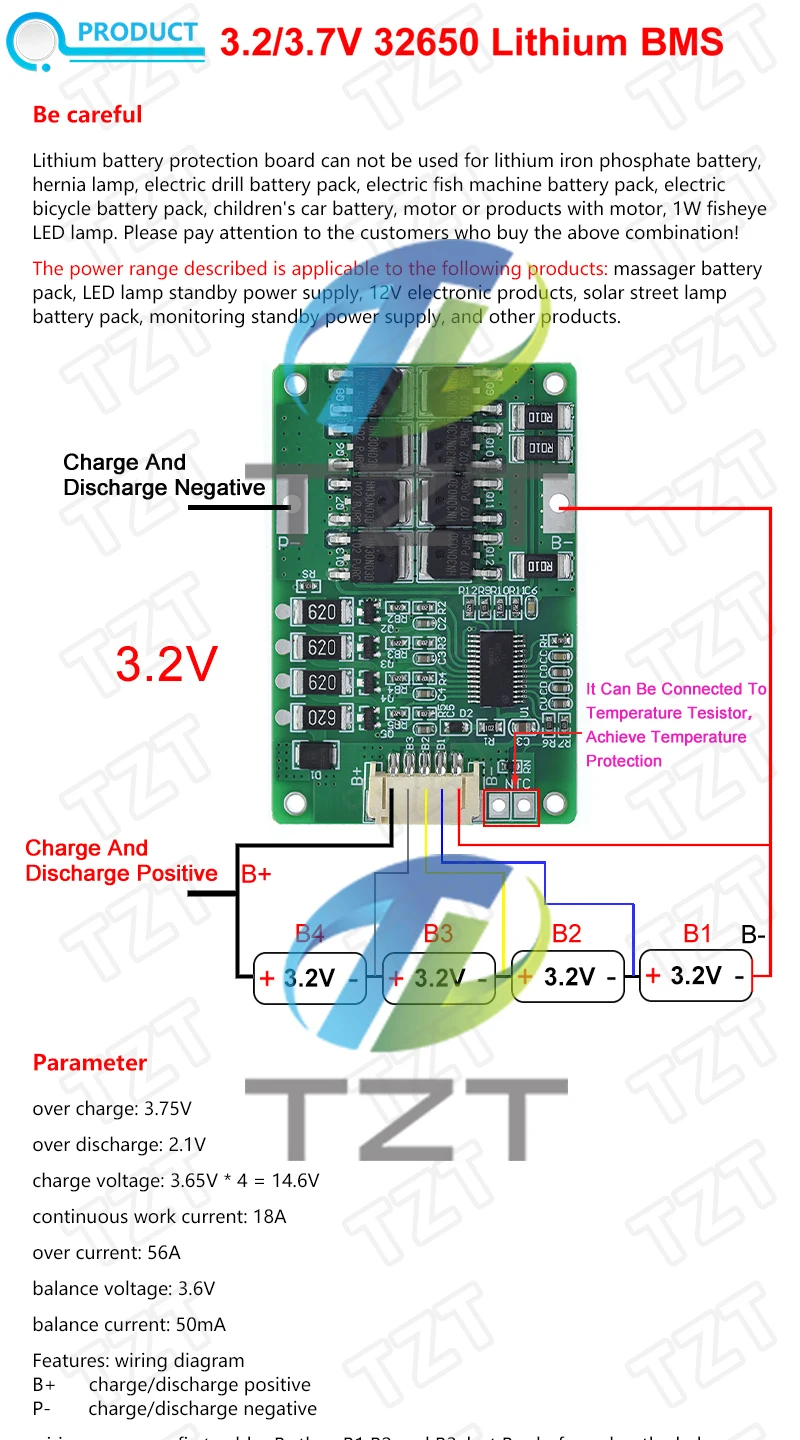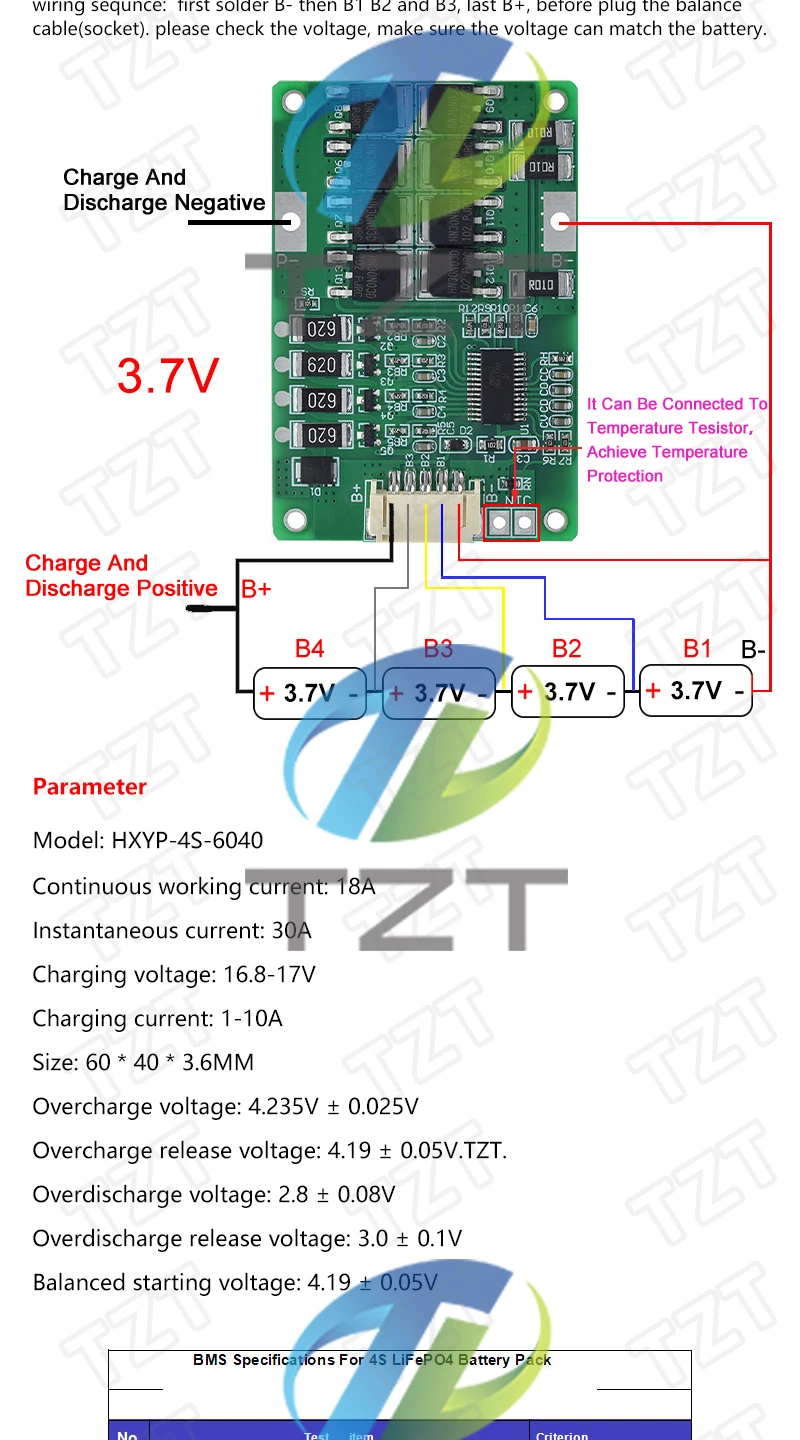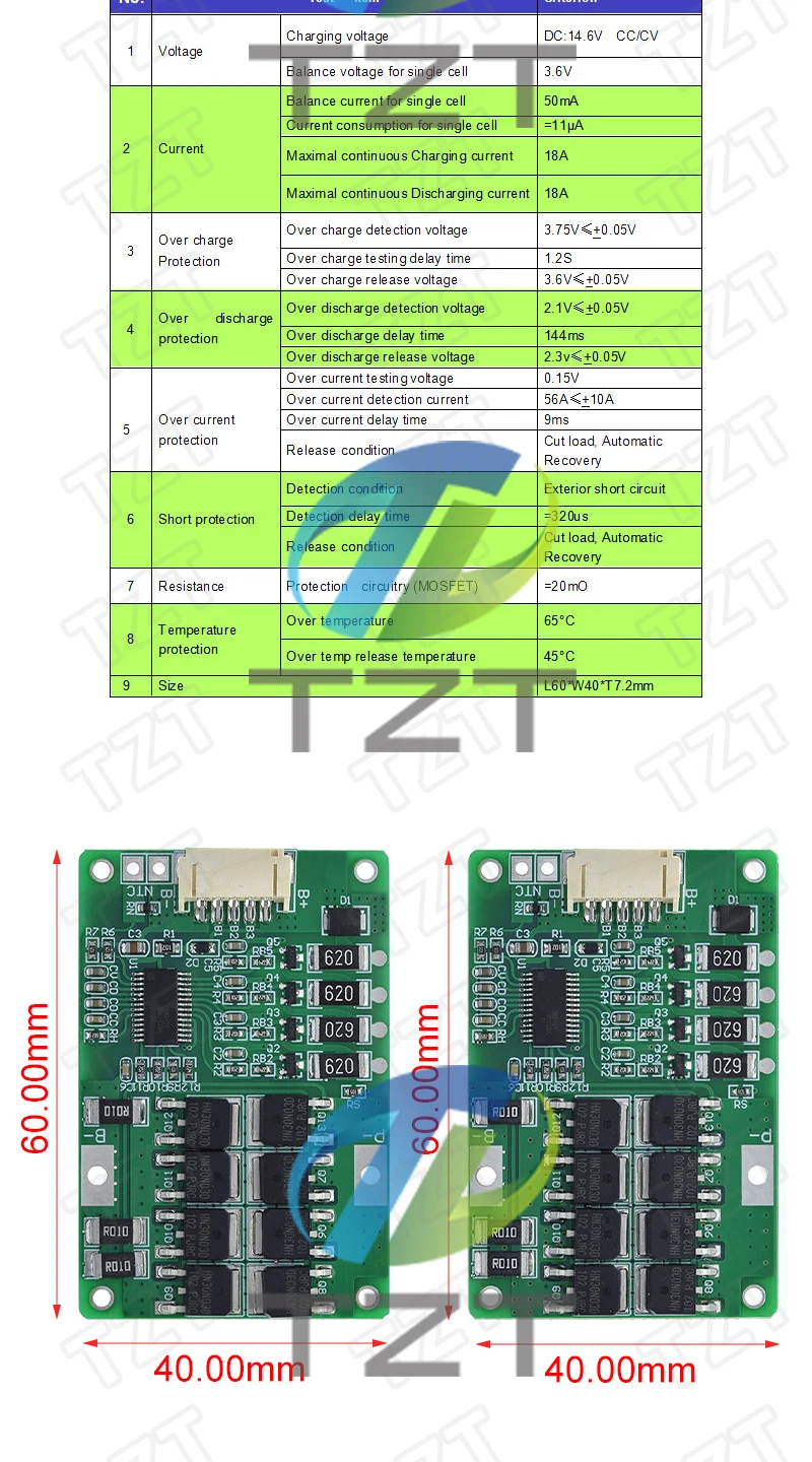 TZT BMS 4S 20A 3.2V 3.7V LiFePO4 / Lithium Battery Charge Protection Board 12.8V 14.4V 18650 32650 Battery Packs With Balanced