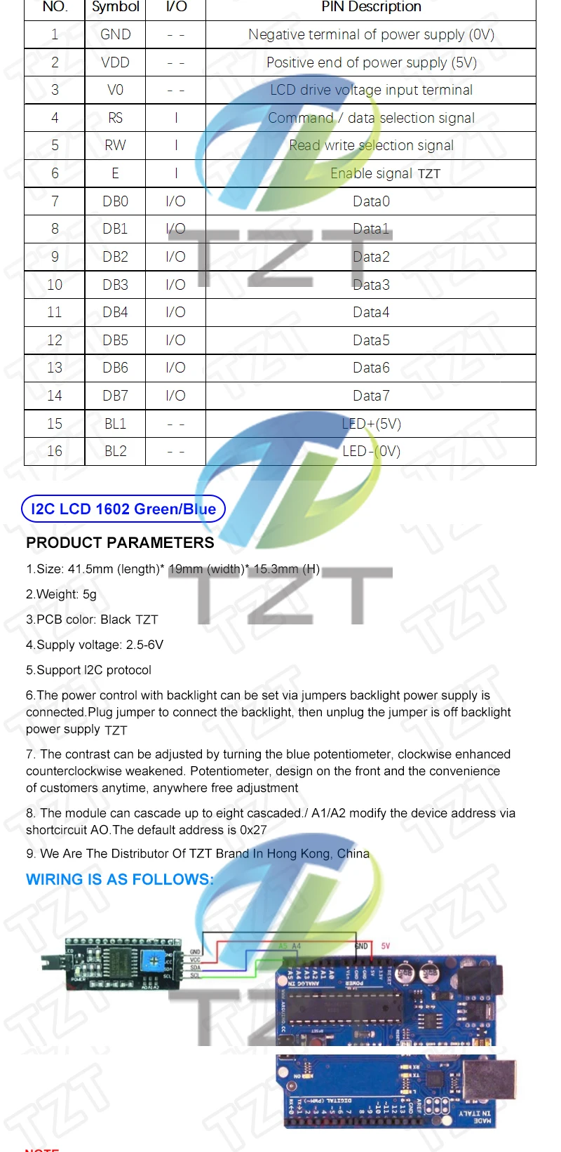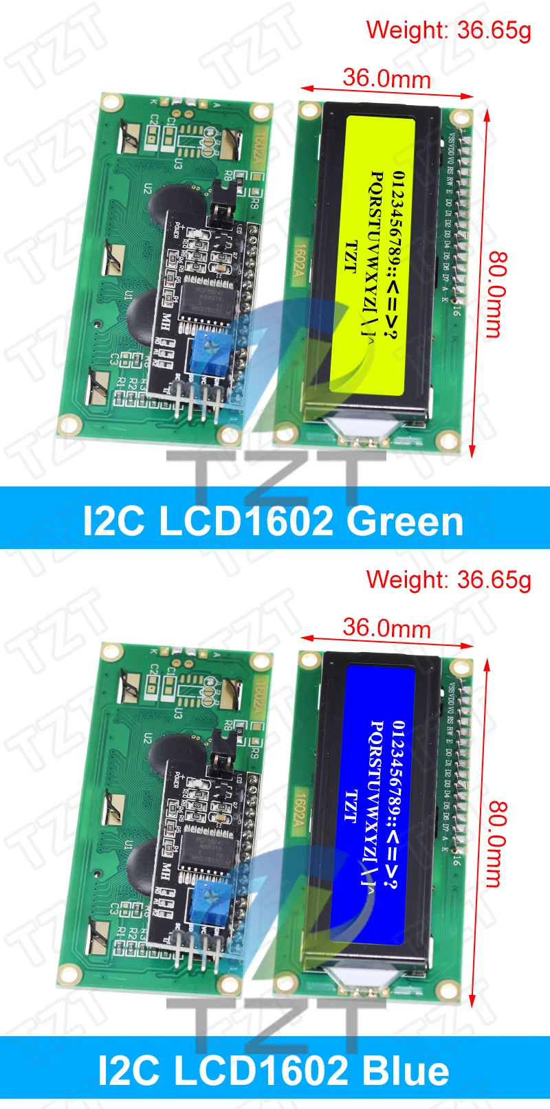 LCD1602 1602 LCD Module Blue / Yellow Green Screen 16x2 Character LCD Display PCF8574T PCF8574 IIC I2C Interface 5V for arduino