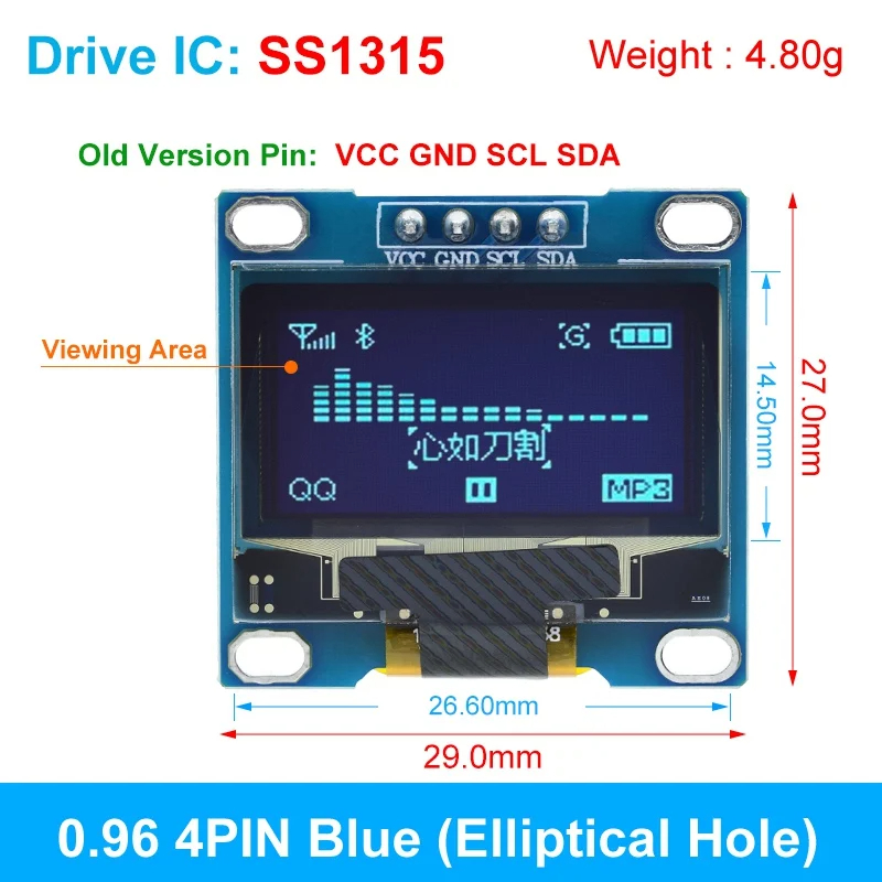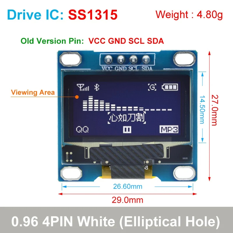 TZT Original 0.96 inch oled IIC Serial White OLED Display Module 128X64 I2C SSD1315 12864 LCD Screen Board For Arduino