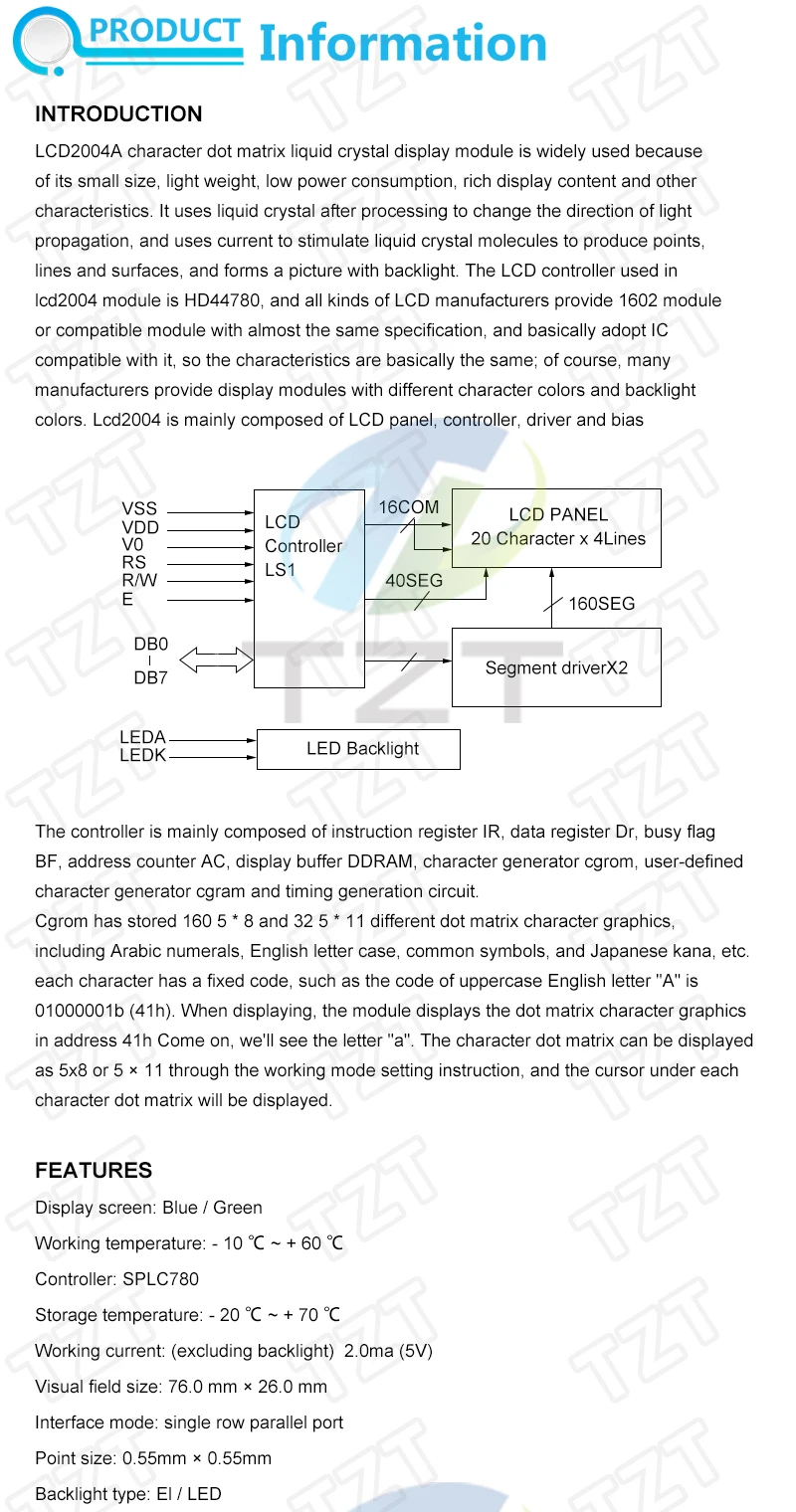 TZT LCD1602 LCD 1602 2004 12864 module Blue Green screen 16x2 20X4 Character LCD Display Module HD44780 Controller