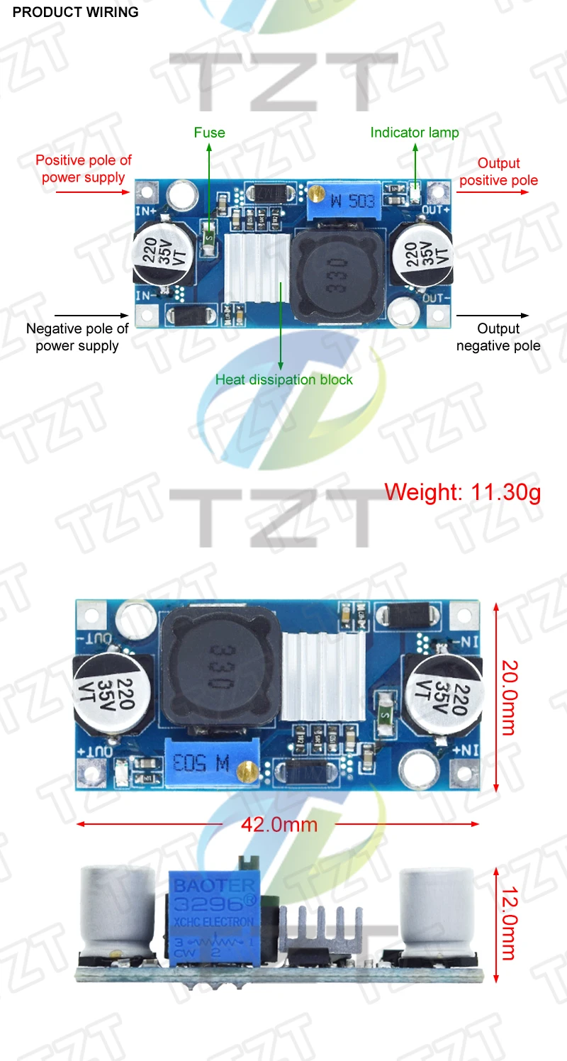 LM2596S DC-DC 3.6-46V 3A adjustable step-down power Supply module With reverse connection protection 5V voltage regulator RED