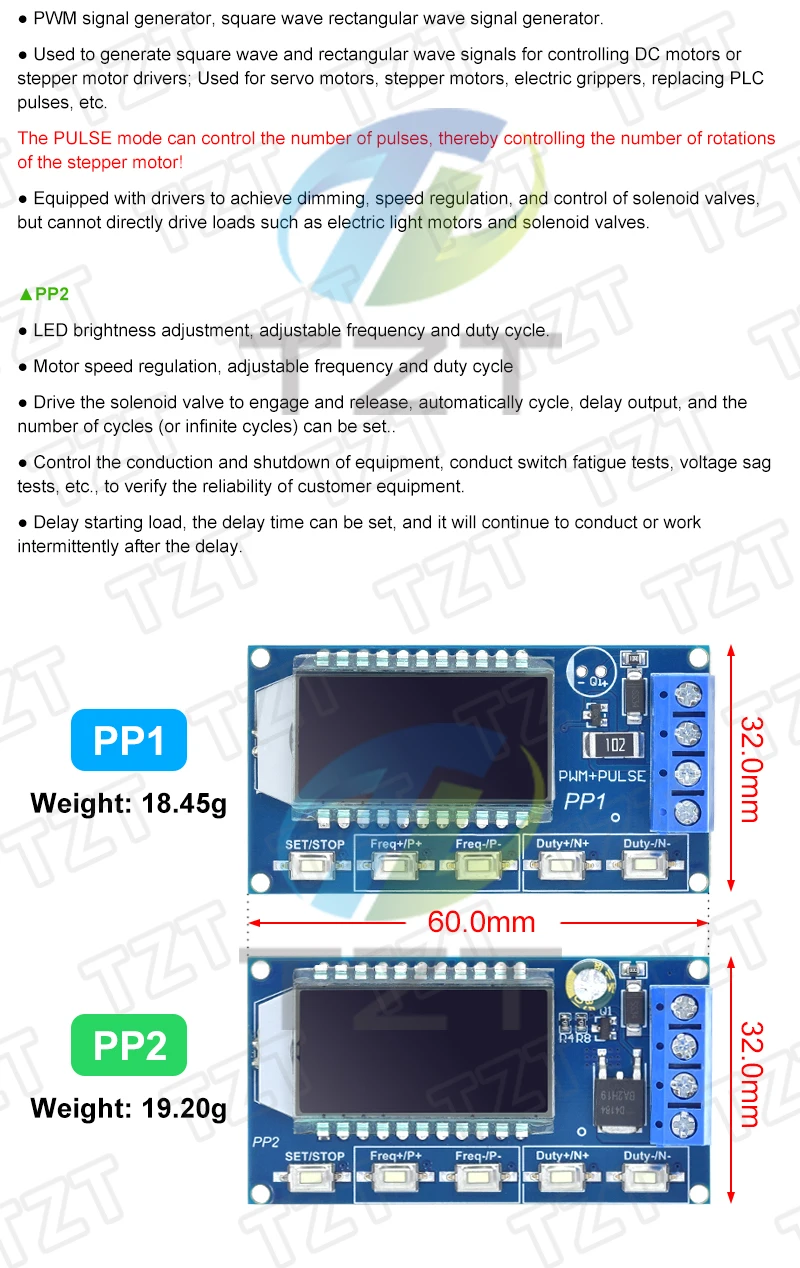 TZT ZK-PP1K Dual Mode Signal Generator ZK-PP2K PWM Motor Speed Controller Regulator 8A 150W Frequency Duty Cycle Adjustable Module