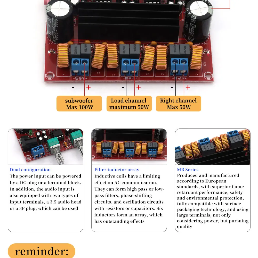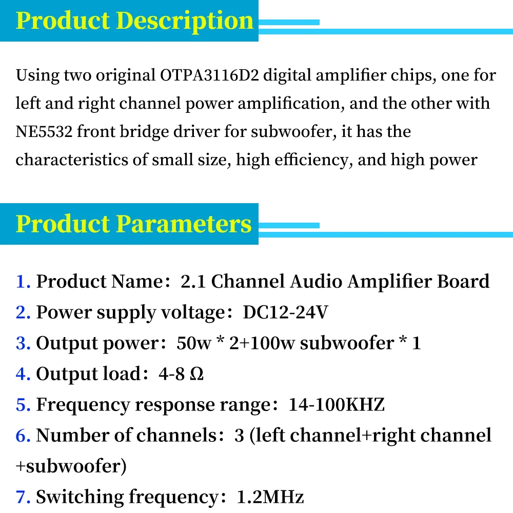 TZT XH-M139 TPA3116D2 2x 50W +100W 2.1 Channel Digital Subwoofer Power Amplifier Board TPA3116*2 3 Channels DC 12-24V