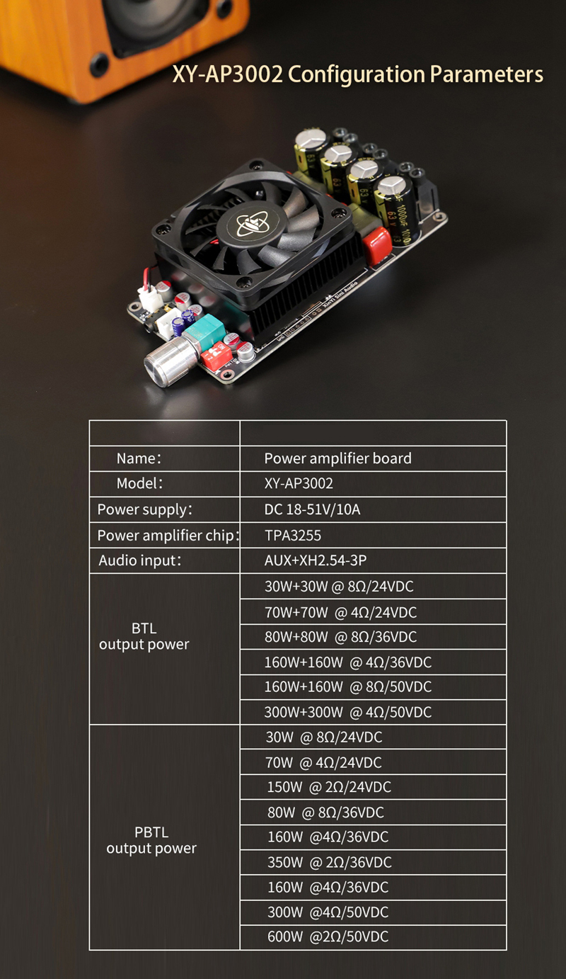 AP3002 pure power amplifier board TPA3255, high power 300W*2, bridge mono 600W, no POP