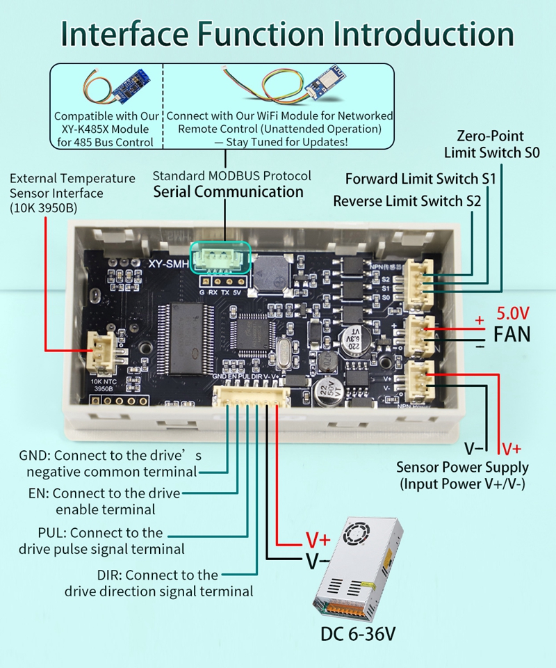 SMH 42 57 Stepper motor controller, manual and automatic speed regulation, forward and reverse rotation, pulse delay positioning, Angle PLC