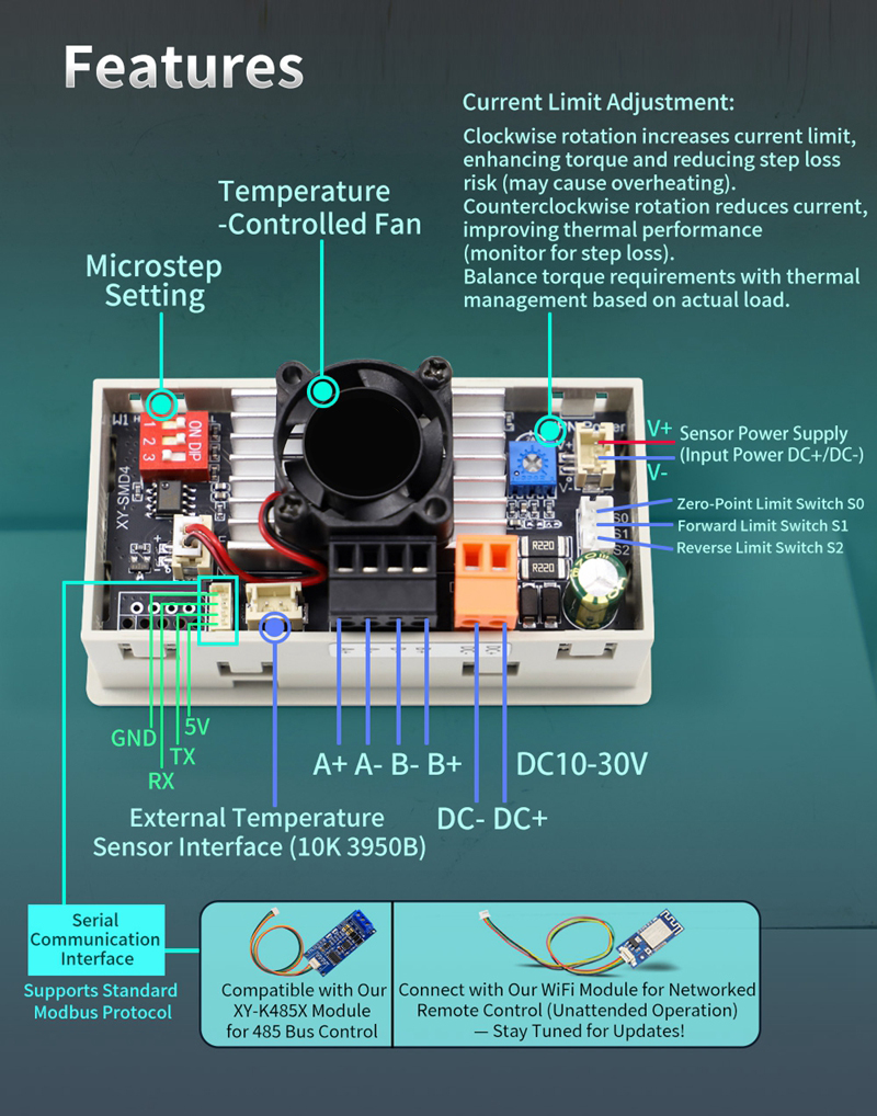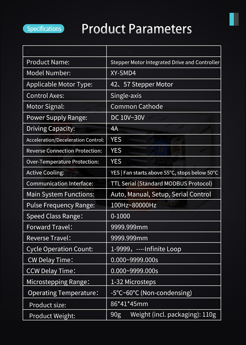 SMD4 drive integrated 42 57 stepper motor forward and reverse rotation control driver Angle speed PLC serial port communication