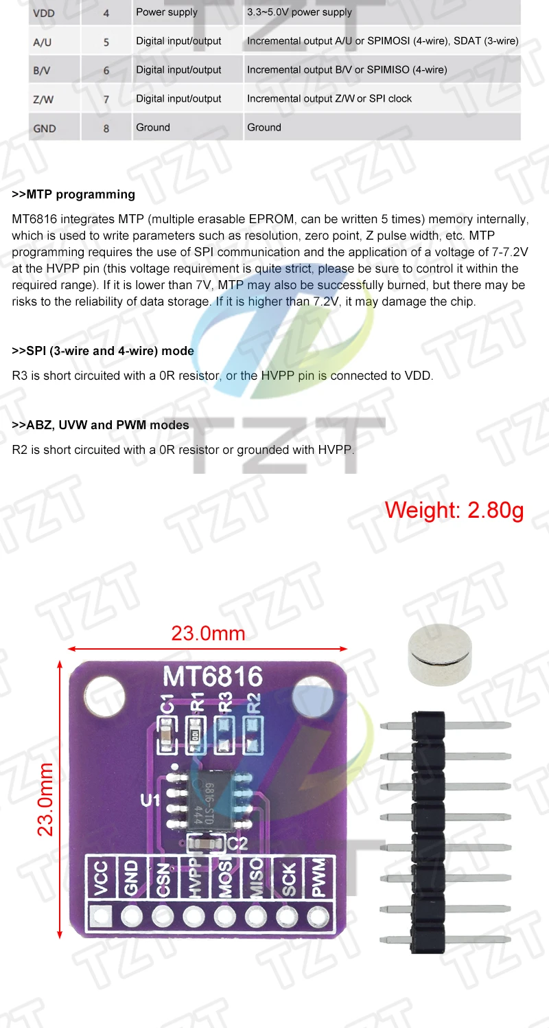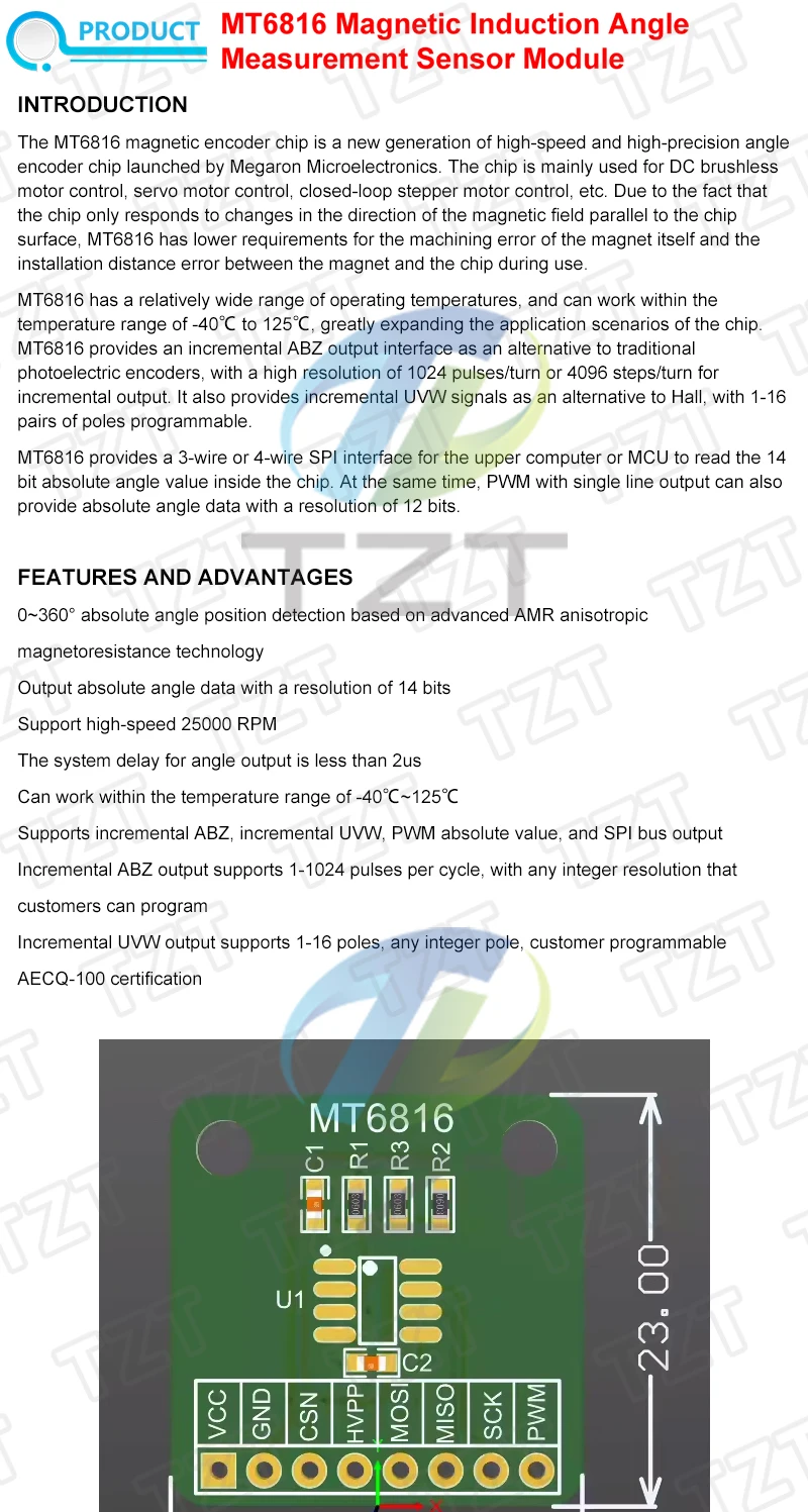 MT6816 High-speed And High-precision Magnetic Encoder Magnetic Induction Angle Measurement Sensor Module