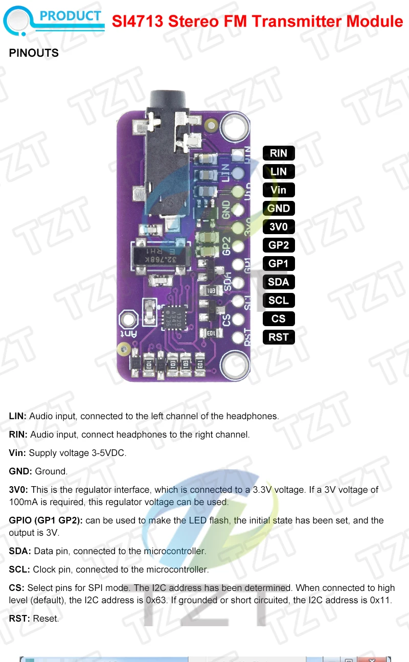 FM Transmitter Module SI4713 Stereo Frequency Modulation CJMCU-4713 DC 3-5V Digital Wireless Radio MCU Controller