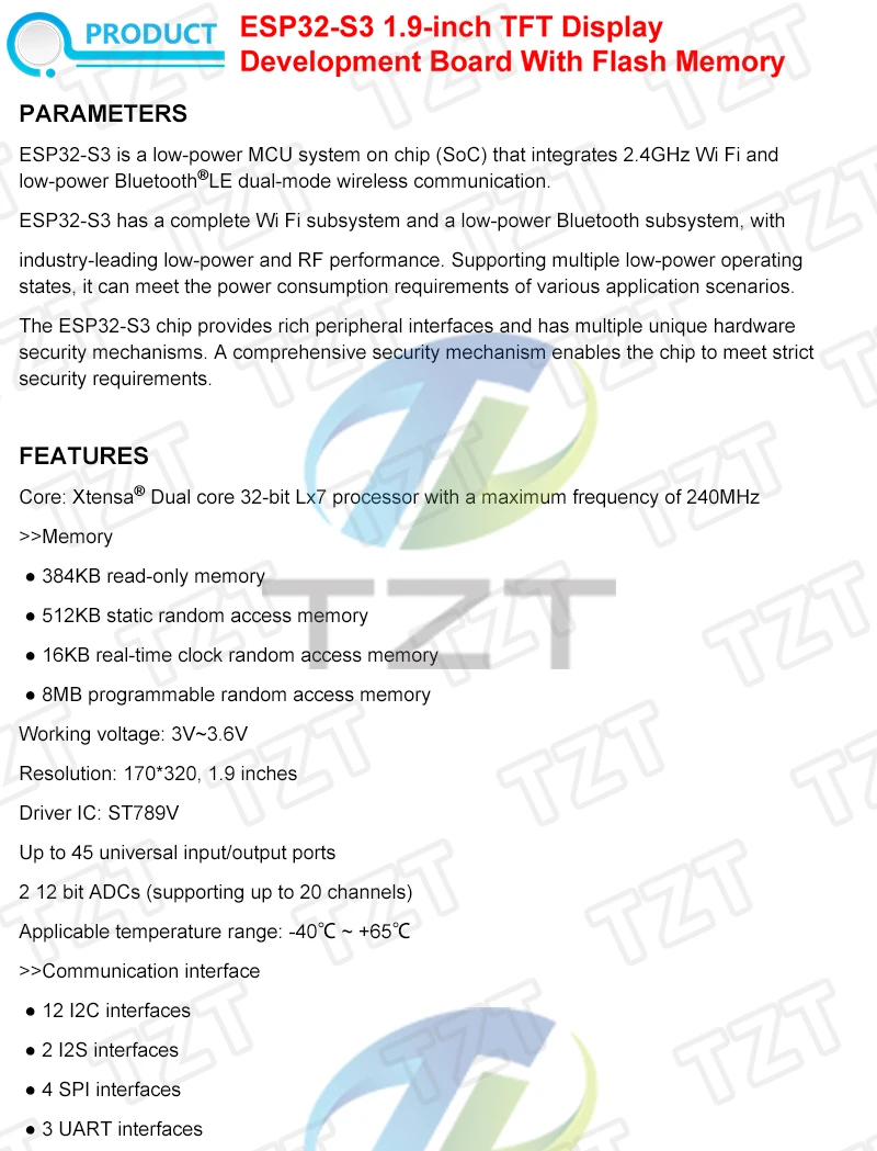 ESP32-S3 Development Board 1.9 Inch IPS LCD Display ST7789 Drive 170x320 Resolution WiFi+Bluetooth-5.0 For Arduino