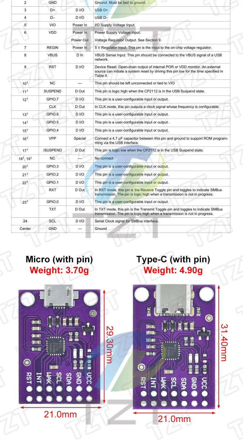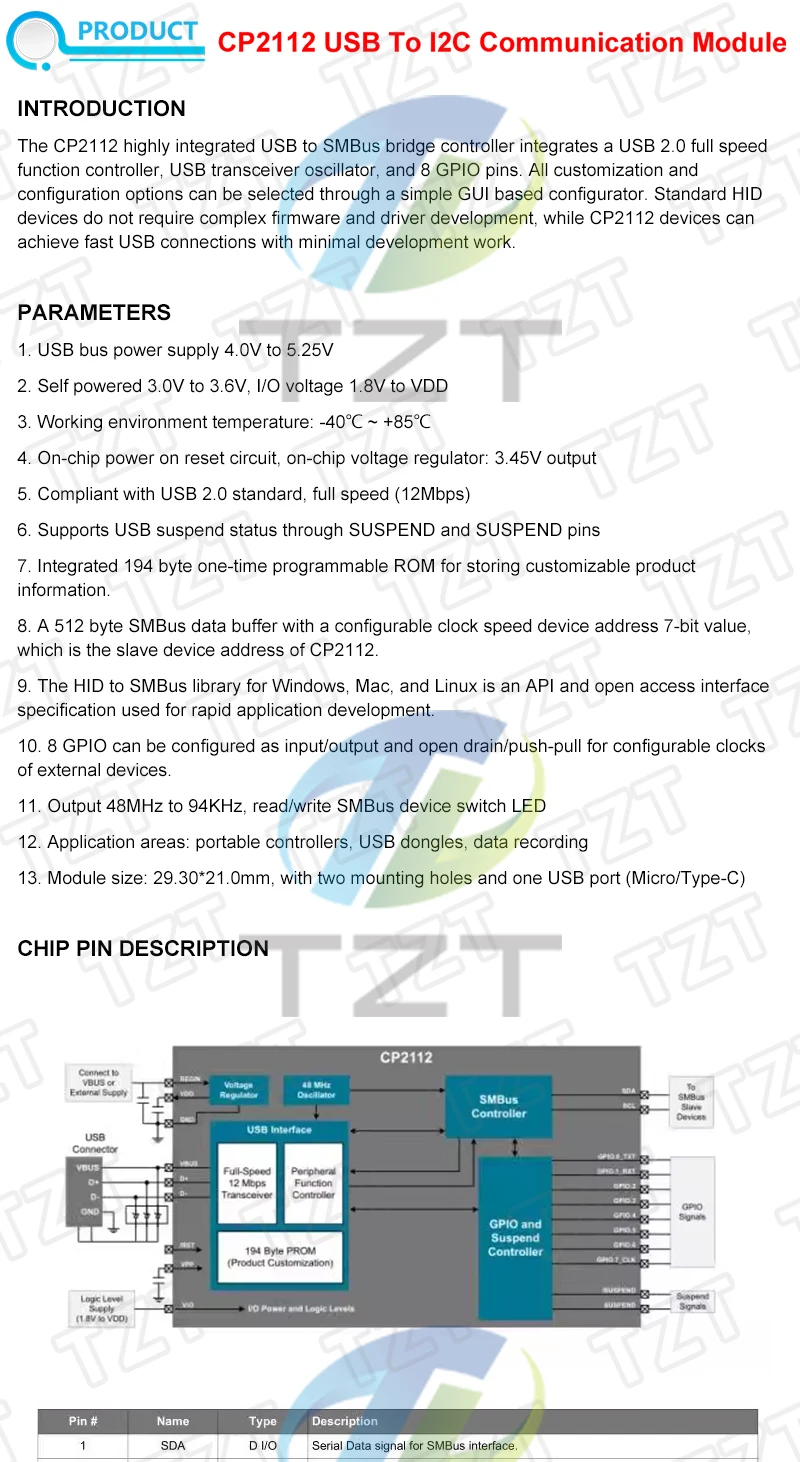 TZT CP2112 Micro/Type-c Debug Board USB To I2C Module For Arduino