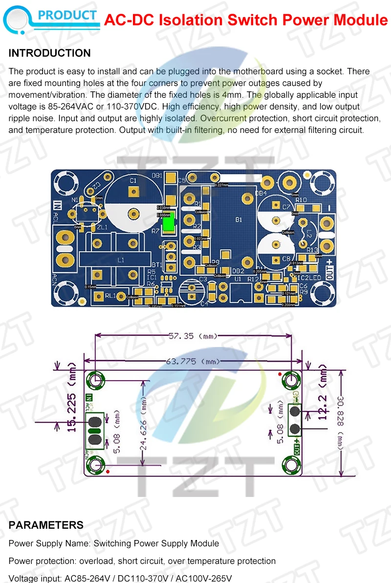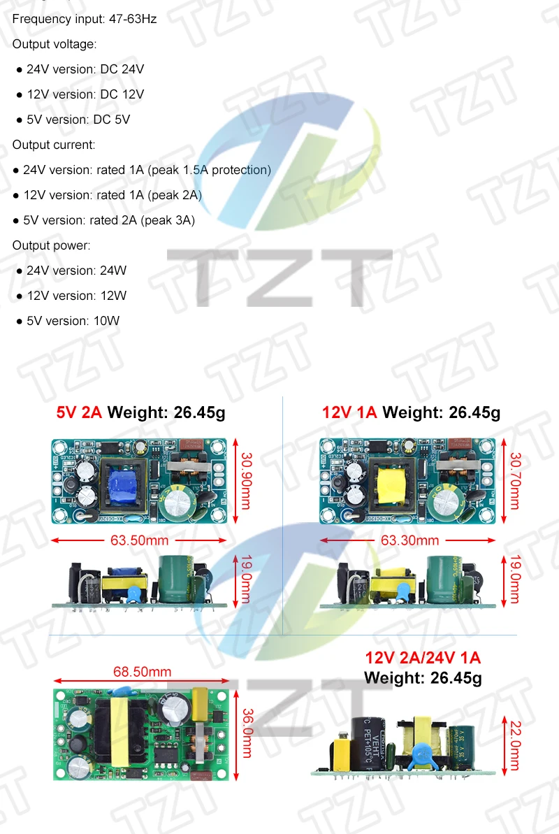 AC-DC 5V 2A 10W / 12V 1A 12W / 12V 2A Or 24V 1A 24W Switching Power Supply Module Bare Circuit 85-264V Board For Replace/Repair