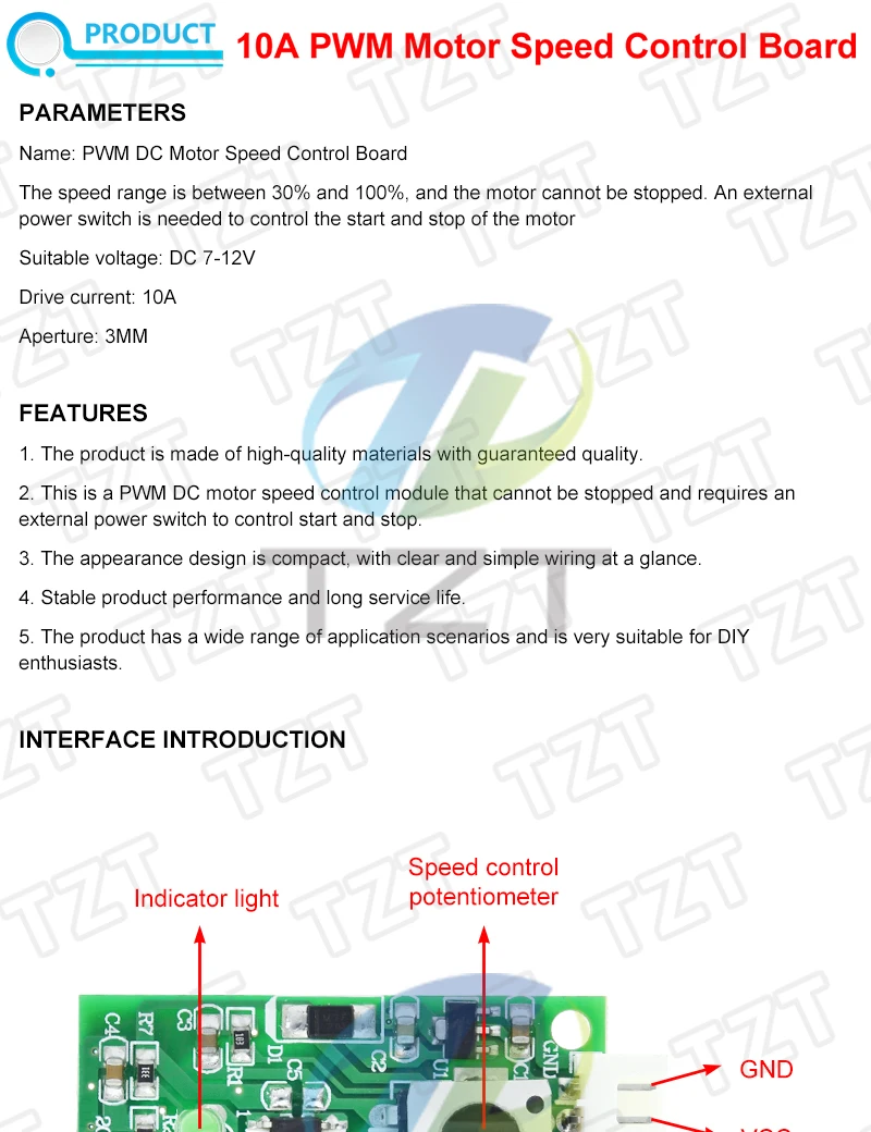 DC 7V~12V 10A PWM DC Motor Speed Control Module High Power Pwm Speed Controller PCB Electronic Board External Power Supply