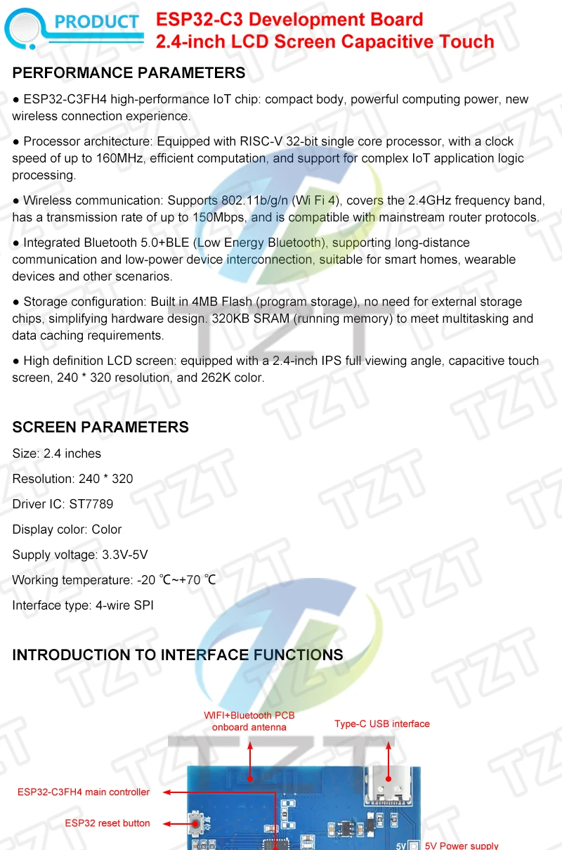 ESP32-C3 With 2.4 Inch TFT LCD Screen ST7789 Small Screen 240x320 Display Module With Touch Color Screen SPI For Arduino