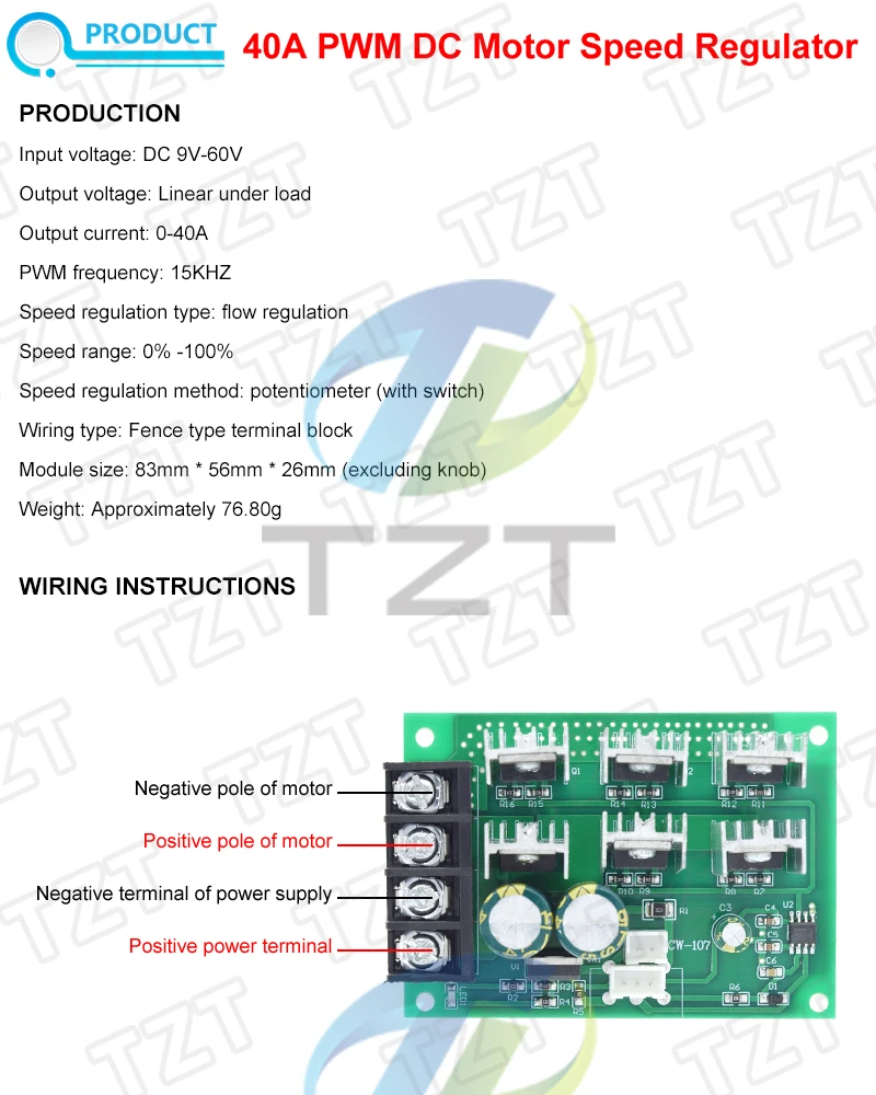 DC 9-55V 40A 2000W PWM DC Motor Pump Speed Regulator High Power Speed Controller 9V 12V 24V 36V 48V
