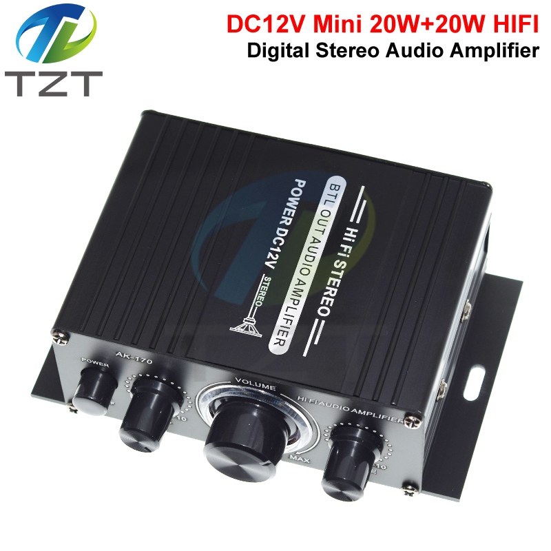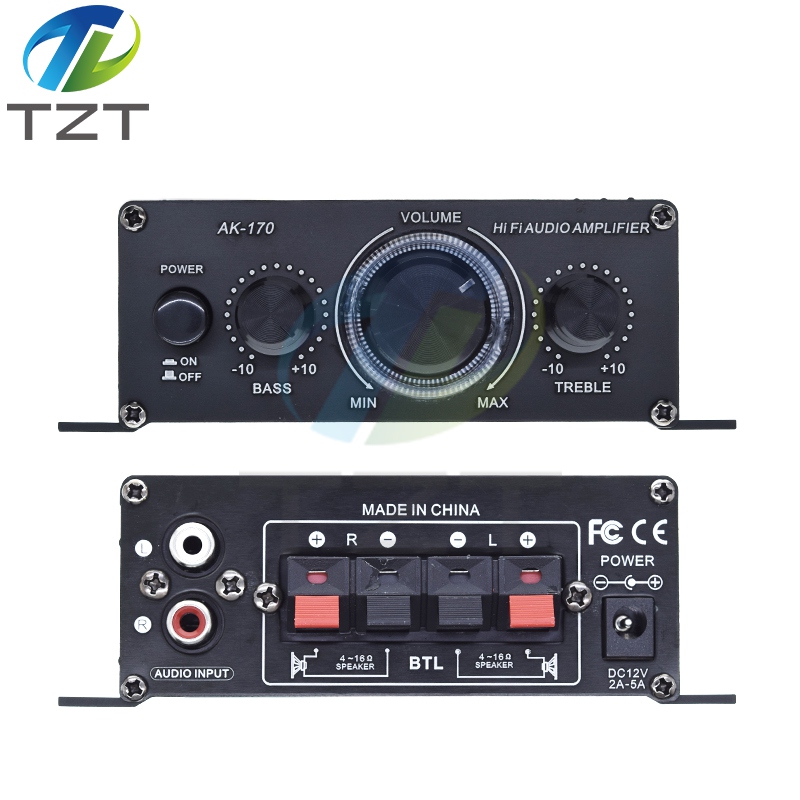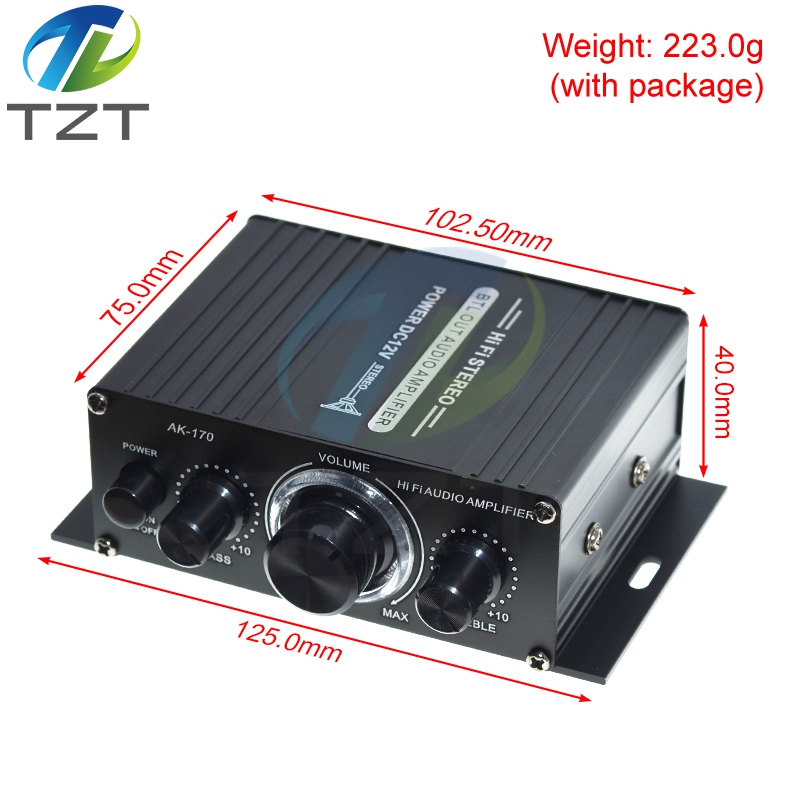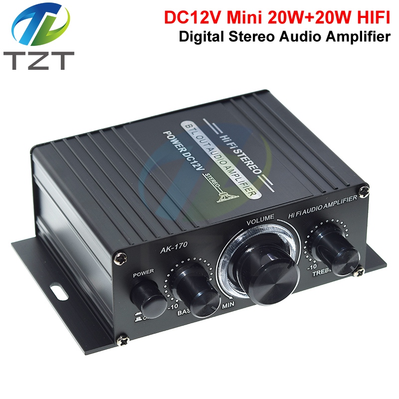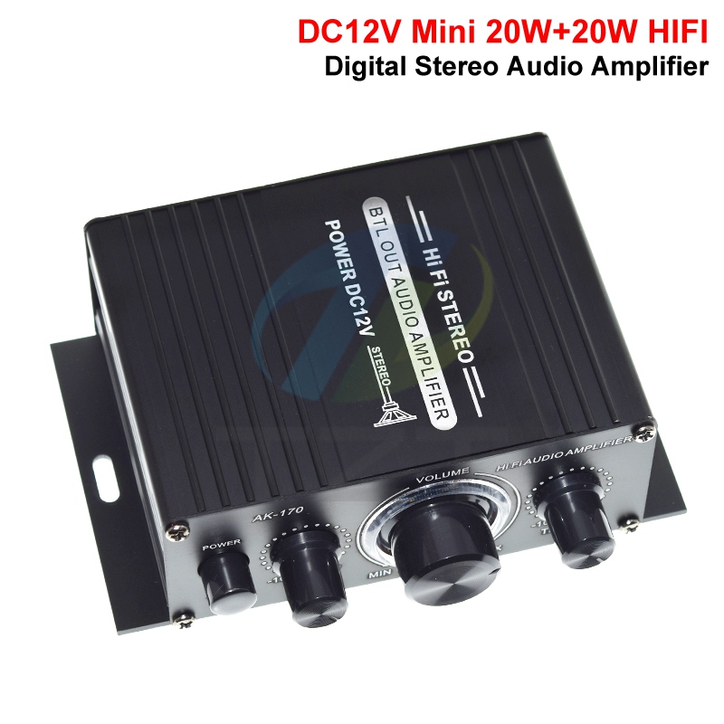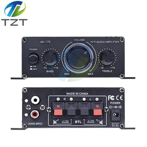 AK170 Mini Digital Power Audio Car Amplifier Blue Light Stereo Audio Amplifier for Home Theater Club Party Music 200Wx2 Power