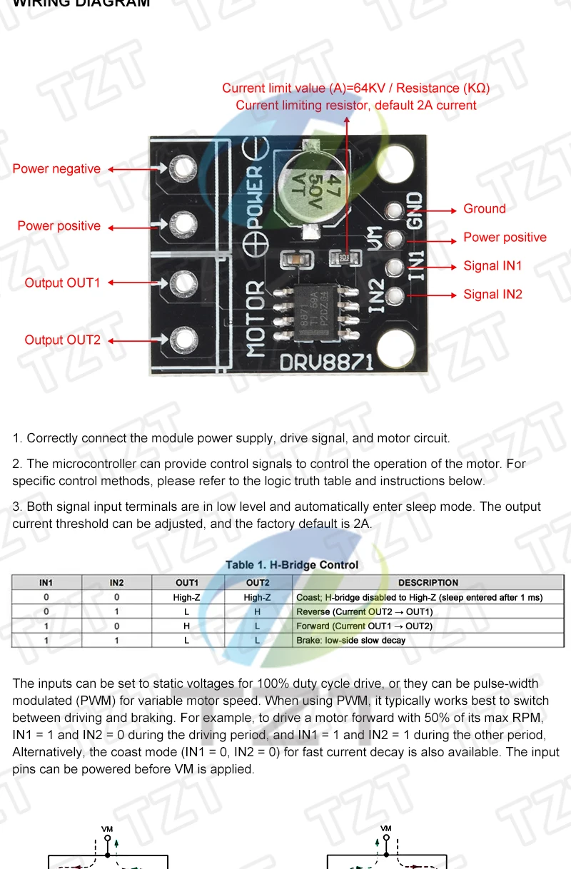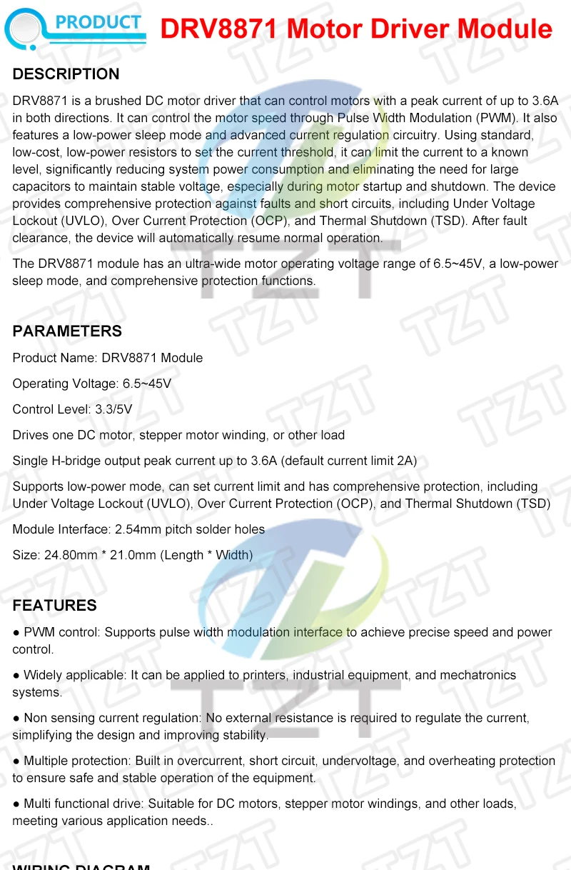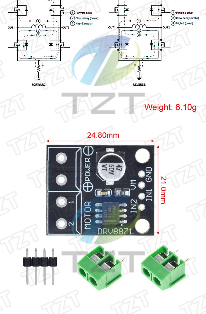 DRV8871 H-Bridge Brushed DC Motor Driver Breakout Board For Arduino PWM Control 3.6A Max Internal Current Sense 6.5V To 45V