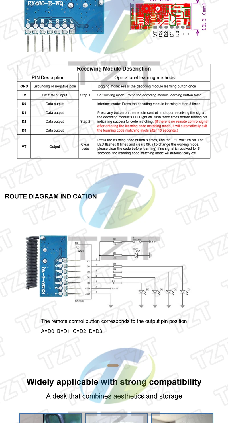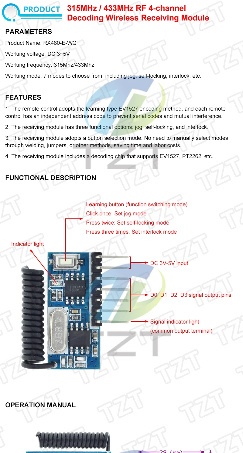 RX480E 315MHZ / 433MHZ RF Receiver Learning Code Decoder Module 315/433 Mhz Wireless 4CH Output For Remote Controls Encoding