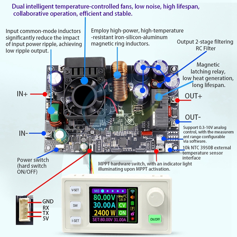 XY8030S CNC DC adjustable regulated power supply constant voltage and constant current module 80V/30A/2400W third-generation upgrade