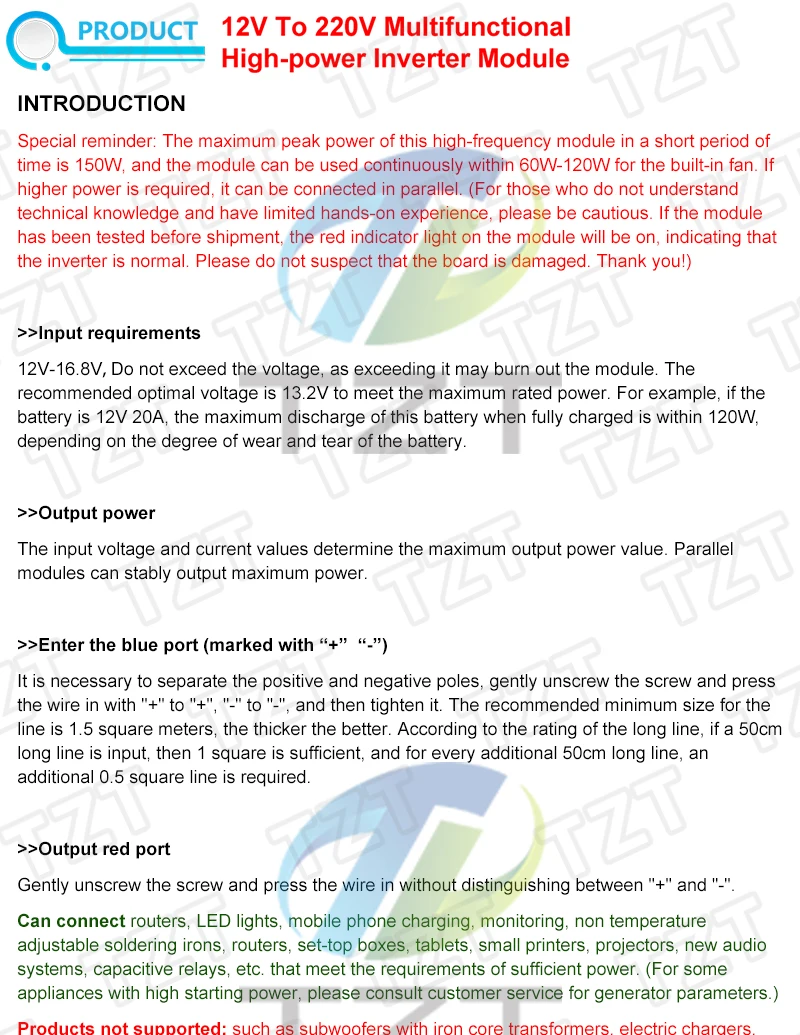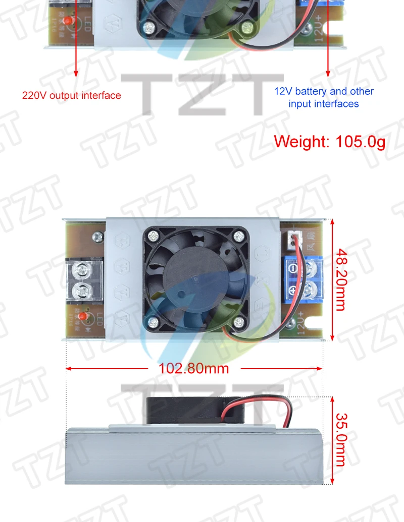 TZT Waterproof DC12V To AC220V Step UP Power Module 150W 50HZ DC-AC Boost Inverter Module Power Regulator With Cooling Fan