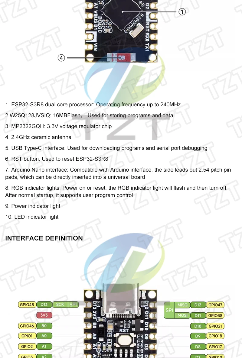 ESP32-S3 Nano WiFi Bluetooth-compatible Development Board IoT Module Based on ESP32-S3R8 240MHz For Arduino