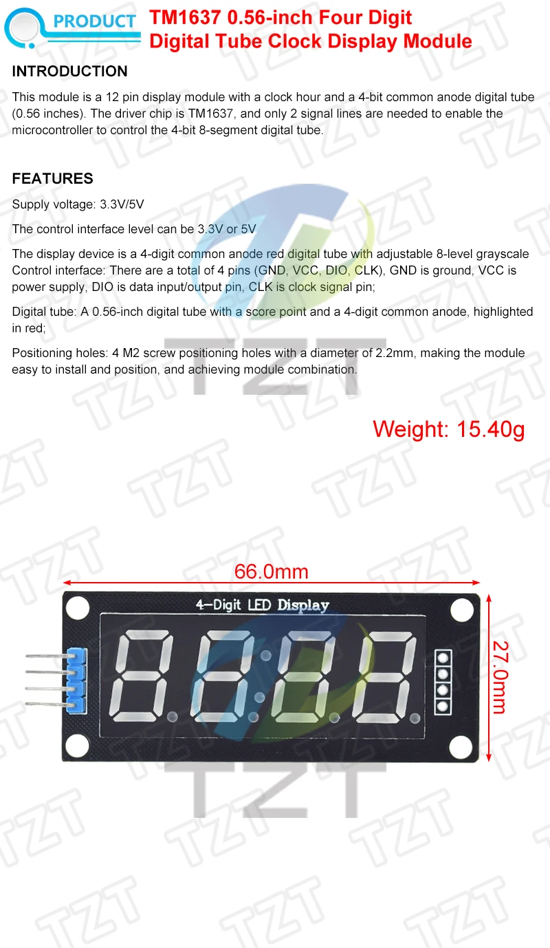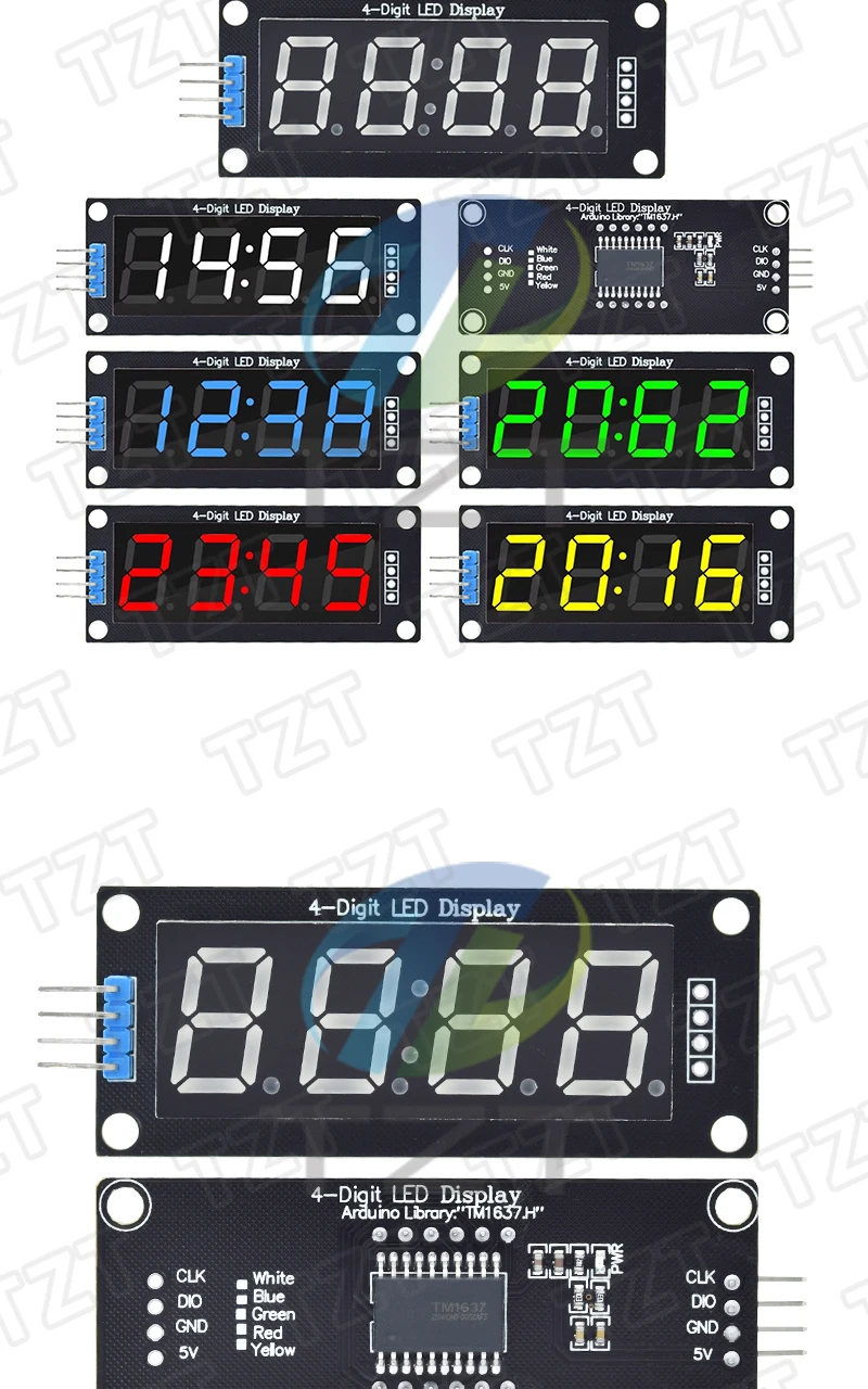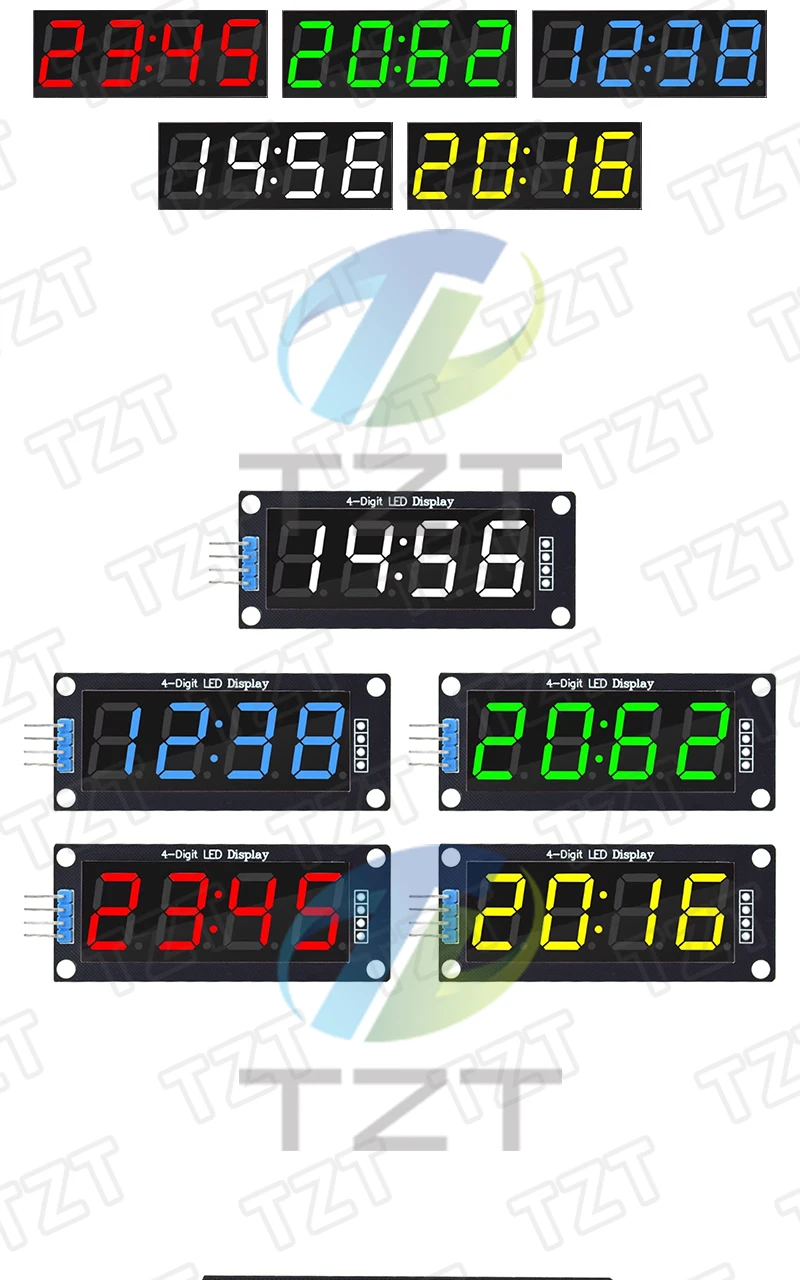 TM1637 LED Display Module for Arduino 4 Digit Tube 7 Segment 0.56 inch Time Clock Indicator Module Red Blue Green Yellow White