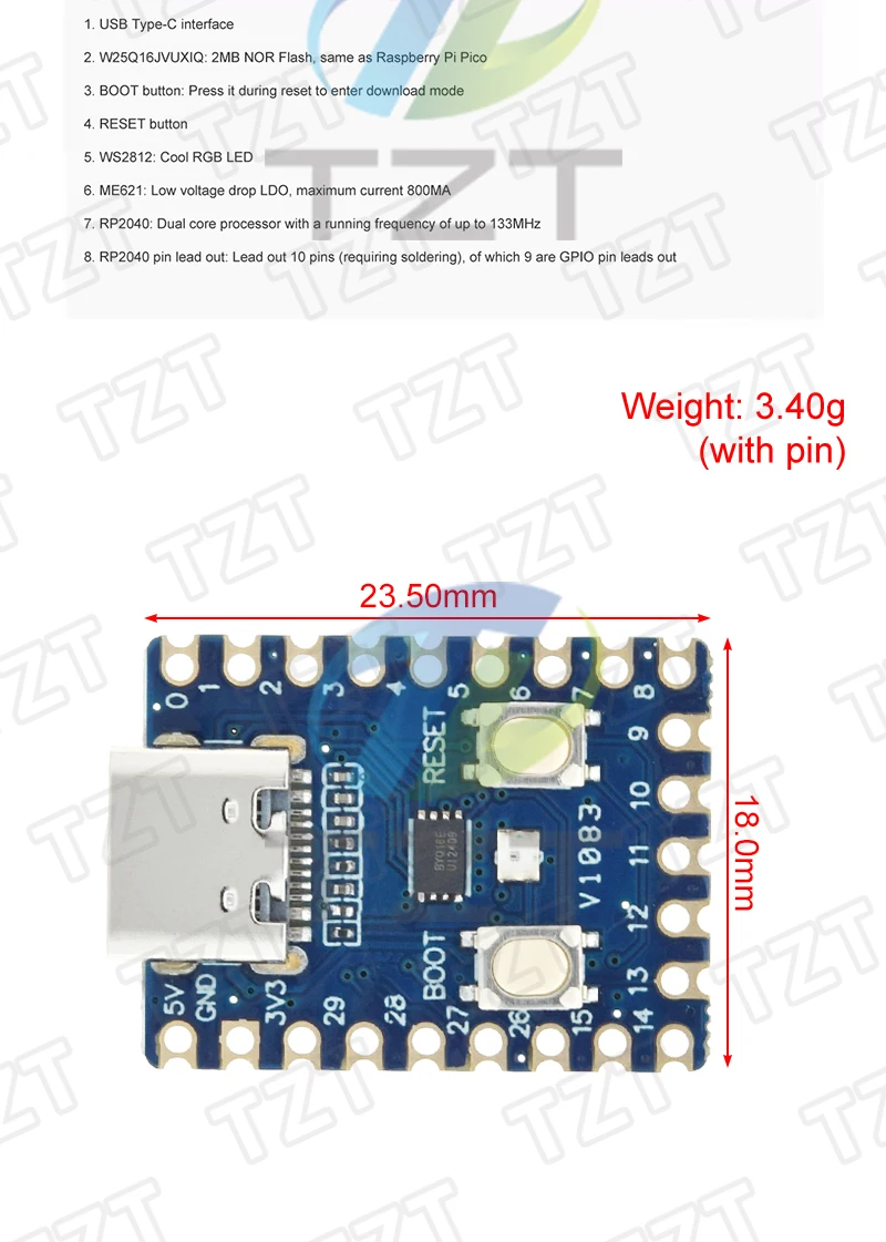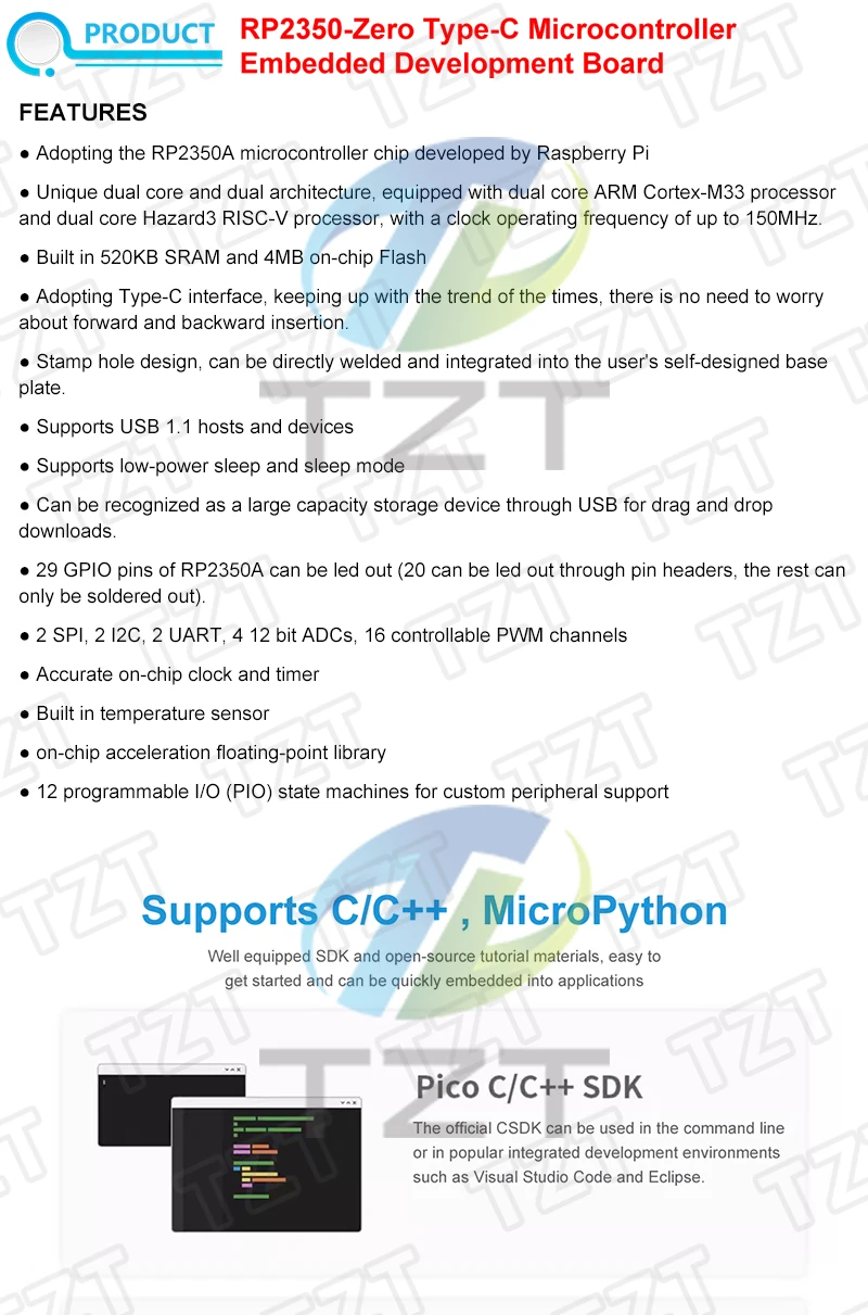 RP2040-Zero RP2350-Zero PICO Development Board Microcontroller Dual-Core Processor Type-C Interface