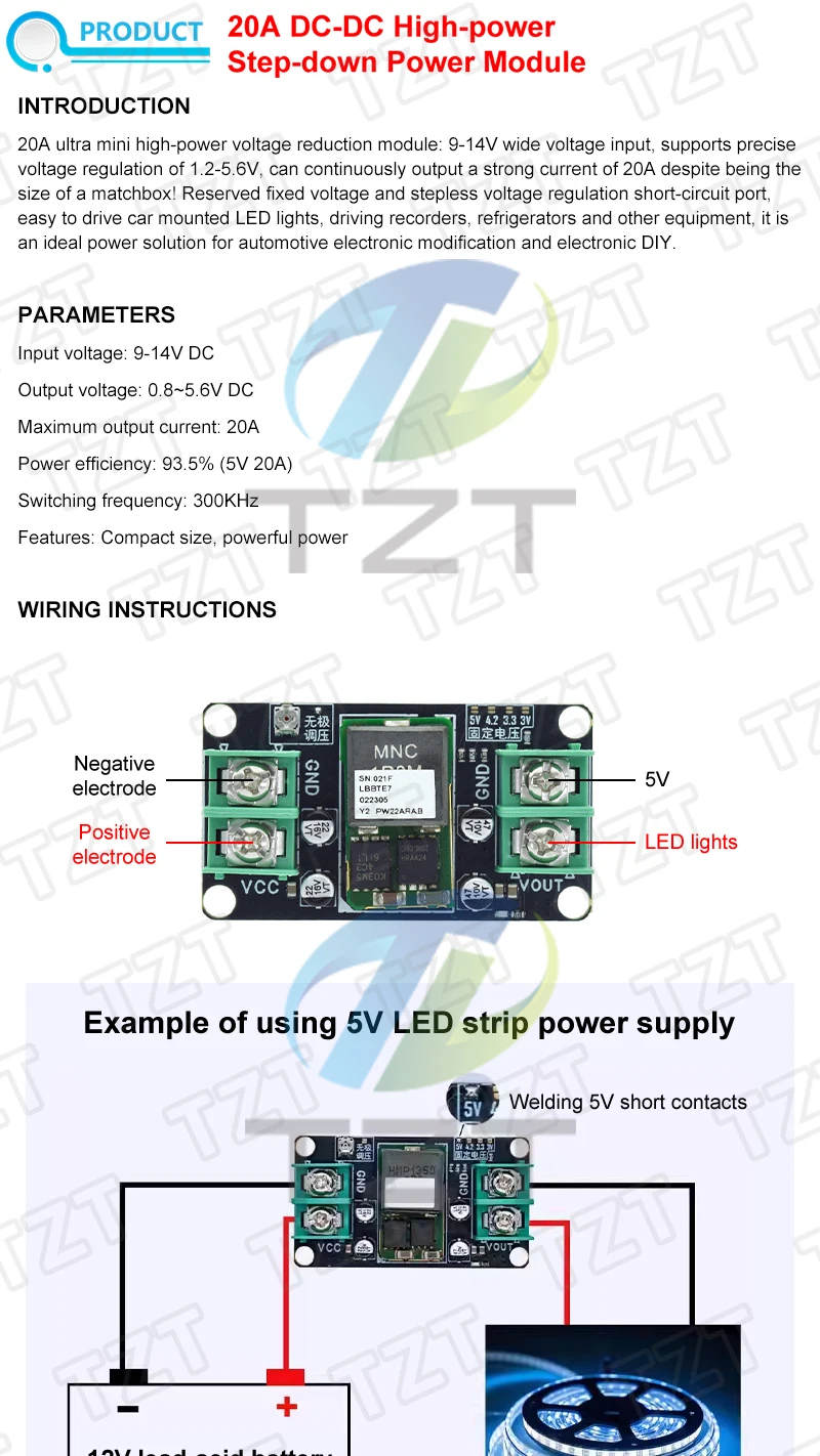 Industrial Grade DC-DC Buck Step-Down Power Supply Module 20A High Power Voltage Regulator DC 9-14V Wide Voltage Input
