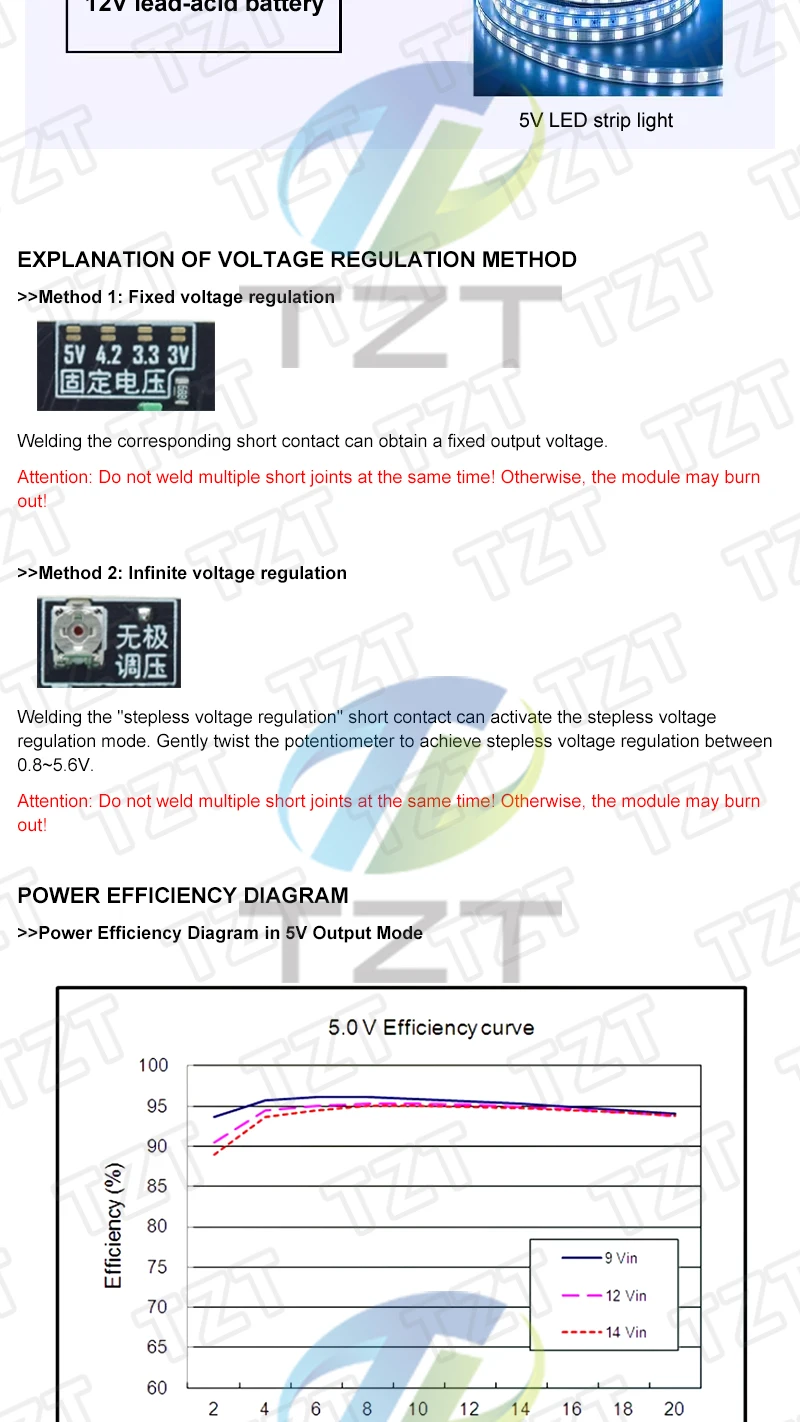 TZT LM2596 DC 4.0~40 to 1.3-37V Adjustable Step-Down Power Module + LED Voltmeter DC/DC